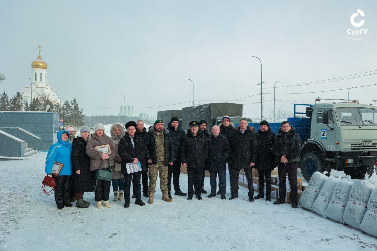Регулярно с площади СурГУ в зону специальной военной операции отправляются адресные конвои, которые формируются общественной организацией «Фонд Победы» совместно с региональным отделением общероссийского общественного движения «Народный фронт».