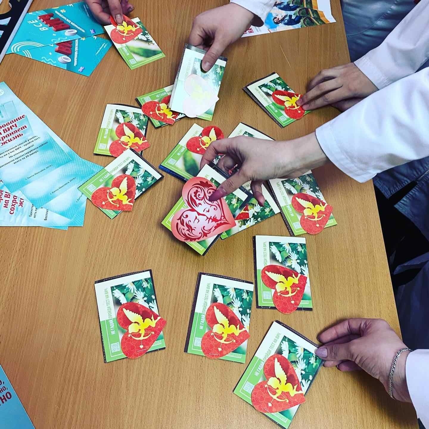 В этот раз активисты провели тематические часы по профилактике данной инфекции, раздали более двухсот полезных «валентинок», развеяв при этом множество мифов по ее распространению. Так, вирус иммунодефицита человека не передается через объятия и рукопожатия, кашель, чихание, поцелуй, пищу, одежду, посуду, укус насекомых, а также через пользование общественным душем и туалетом, плаванием в бассейне.