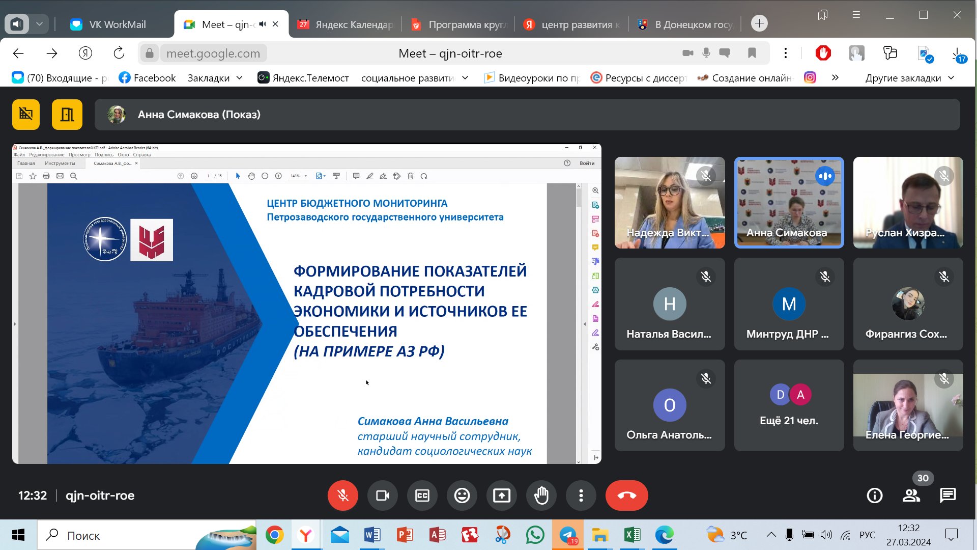 Особый интерес у гостей и участников вызвал доклад о формировании показателей кадровой потребности экономики и источниках ее обеспечения (на примере регионов Арктической зоны РФ). Его представила старший научный сотрудник Центра бюджетного мониторинга Петрозаводского государственного университета Анна Симакова. Анна Васильевна подчеркнула, что Арктическая Зона РФ – трудодефицитный регион, рассказала об определении источников обеспечения кадровой потребности и представила детализацию показателей кадровой потребности по профессиям/должностям в экономике.
