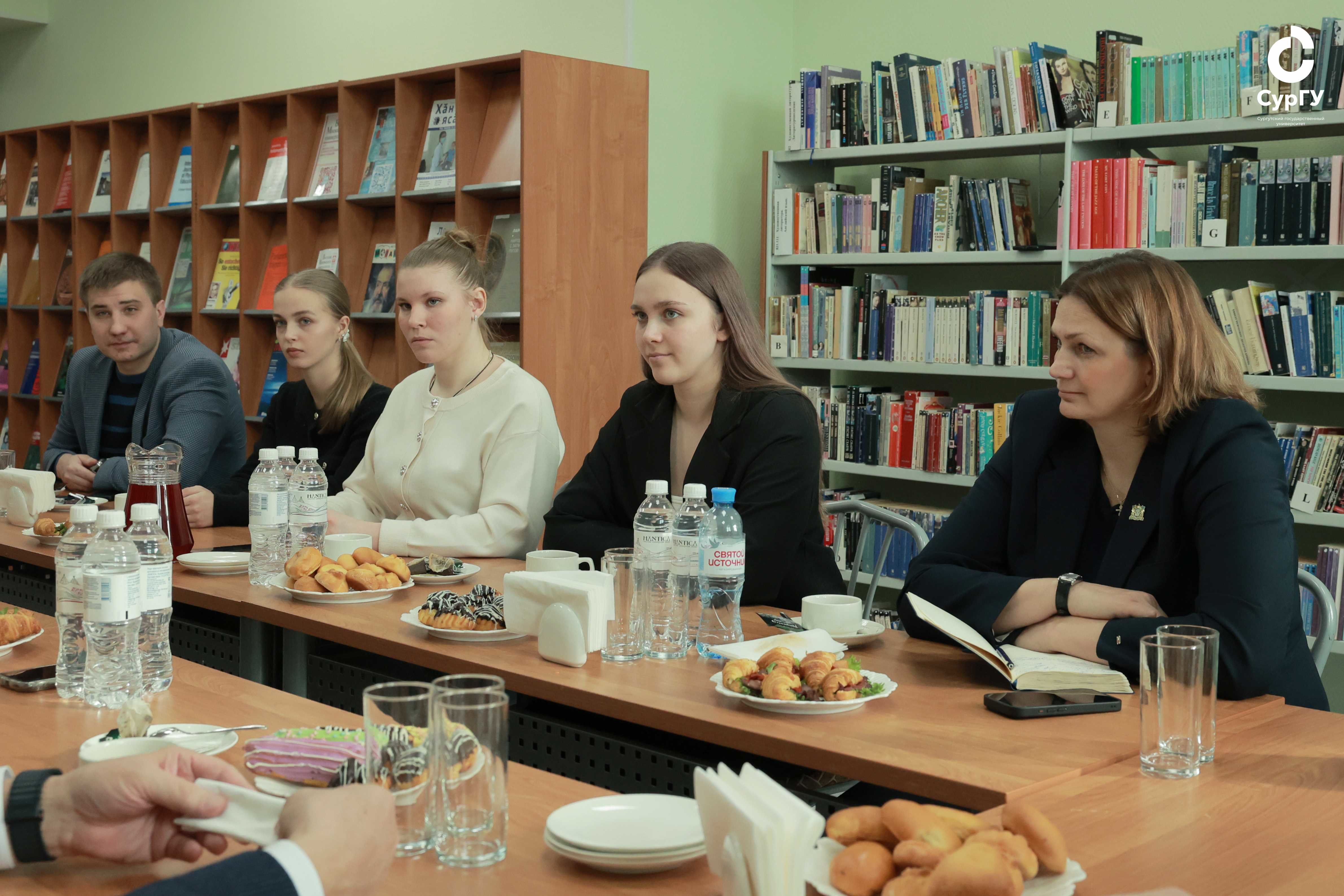 Ректор Сургутского государственного университета Сергей Косенок и директор Департамента физической культуры и спорта Ханты-Мансийского автономного округа – Югры Софья Конух встретились с женской сборной командой по волейболу и заслуженным тренером России Ириной Царенко в связи с их выходом в финал чемпионата России Первой лиги по волейболу. В открытом диалоге также приняли участие проректор по молодежной политике Святослав Болотов и начальник отдела по спортивно-массовой работе Кирилл Третяк.