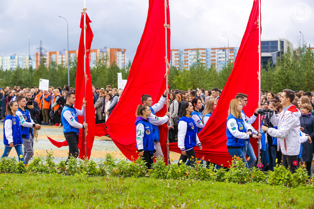 Первое сентября в Сургутском государственном университете ознаменовалось торжественным митингом, посвященным Дню знаний. Его театрализованным выступлением открыла группа студентов, которая «проплыла» под алыми парусами, символизирующими мечты и надежды молодежи, начало нового – студенческого – этапа их жизни теперь уже на другом корабле под названием «СурГУ».