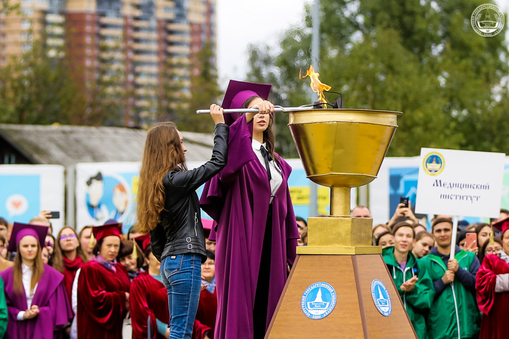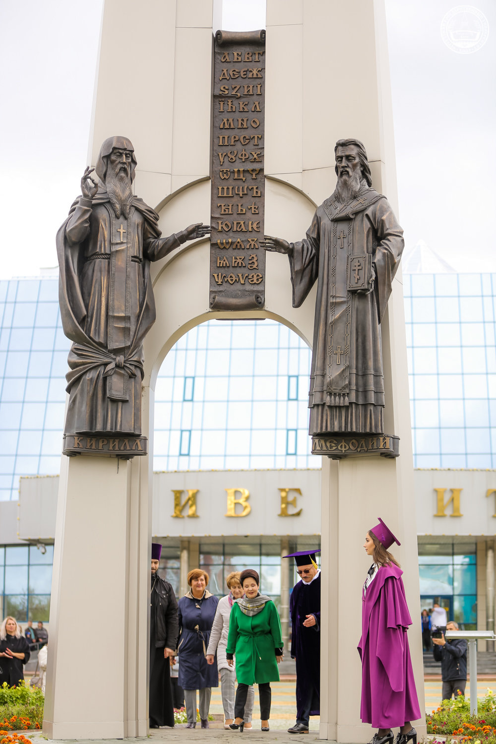 На митинге прозвучали цифры. Оказывается, в 2019 году Сургутским госуниверситетом было выпущено 685 дипломированных специалистов, причем 110 из них – с красными дипломами. А первого сентября в студенческое братство был торжественно принят 1191 первокурсник! Без сомнения, им, новичкам, навсегда запомнятся события этого дня: и то, как взвилась в хмурое сургутское небо пятерка белоснежных голубей; и как зажигали символичную чашу знаний СурГУ председатель студенческого совета Ася Кочарян и студентка первого курса Медицинского института Виктория Чиганова, набравшая по результатам ЕГЭ 272 балла; и студенческий гимн «Гаудеамус», и, конечно же, обязательный в таком случае проход первокурсников через арку памятника Кириллу и Мефодию…