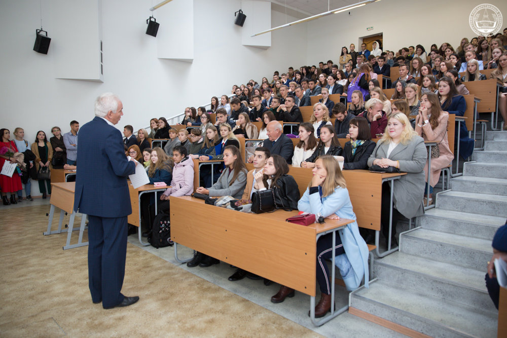 – Приобретение новых знаний и умений, их постоянное обновление и развитие – главный приоритет специалиста в условиях современной экономики. Нет такой страны, которая не хотела бы иметь лучших ученых, инженеров, врачей, политиков, учителей, лучшие технологии и высокий уровень жизни. Дорогие наши первокурсники, вы выбрали Сургутский государственный университет. Мы с радостью принимаем вас в наше академическое сообщество. Для вас наступила пора, когда вы можете реализовать свои возможности, свой талант в учебе, науке, спорте, общественной деятельности. На вас государство возлагает большие надежды, именно вы – стратегический ресурс инновационного развития страны. <…> Вам предстоит воплощать идею университета стать точкой роста для экономики региона и страны, совершить прорыв в науке. Вы будете учиться у талантливых преподавателей, многие из которых добились значительных результатов в разных областях образования, в науке и экономике. Используйте эту возможность – учитесь у настоящих ученых! Будьте любознательны! Любите сам процесс овладения новыми знаниями! Применяйте их в учебных и производственных практиках! Подавайте заявки на гранты! Участвуйте в различных конференциях, интеллектуальных состязаниях! Пусть на тернистом пути познания нас всех сопровождают покровители университета – святые равноапостольные Кирилл и Мефодий.