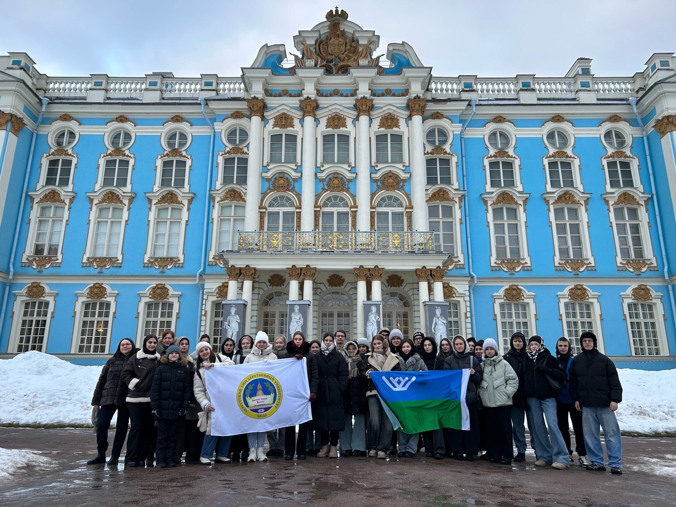 В эти дни победители ежегодного конкурса «Лучшая учебная группа СурГУ – 2024» (группа 404-21 Института экономики и управления), а также выдающиеся студенты, проявившие себя в учебной, научной, волонтерской, спортивной, творческой деятельности, путешествуют по Санкт-Петербургу. В программе – обзор местных достопримечательностей, соборов и исторических памятников.