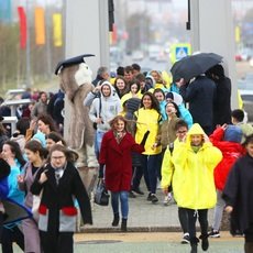 Несмотря на дождь и порывистый ветер, благодаря выступлению творческих коллективов Сургутского государственного университета митинг получился ярким и красочным.