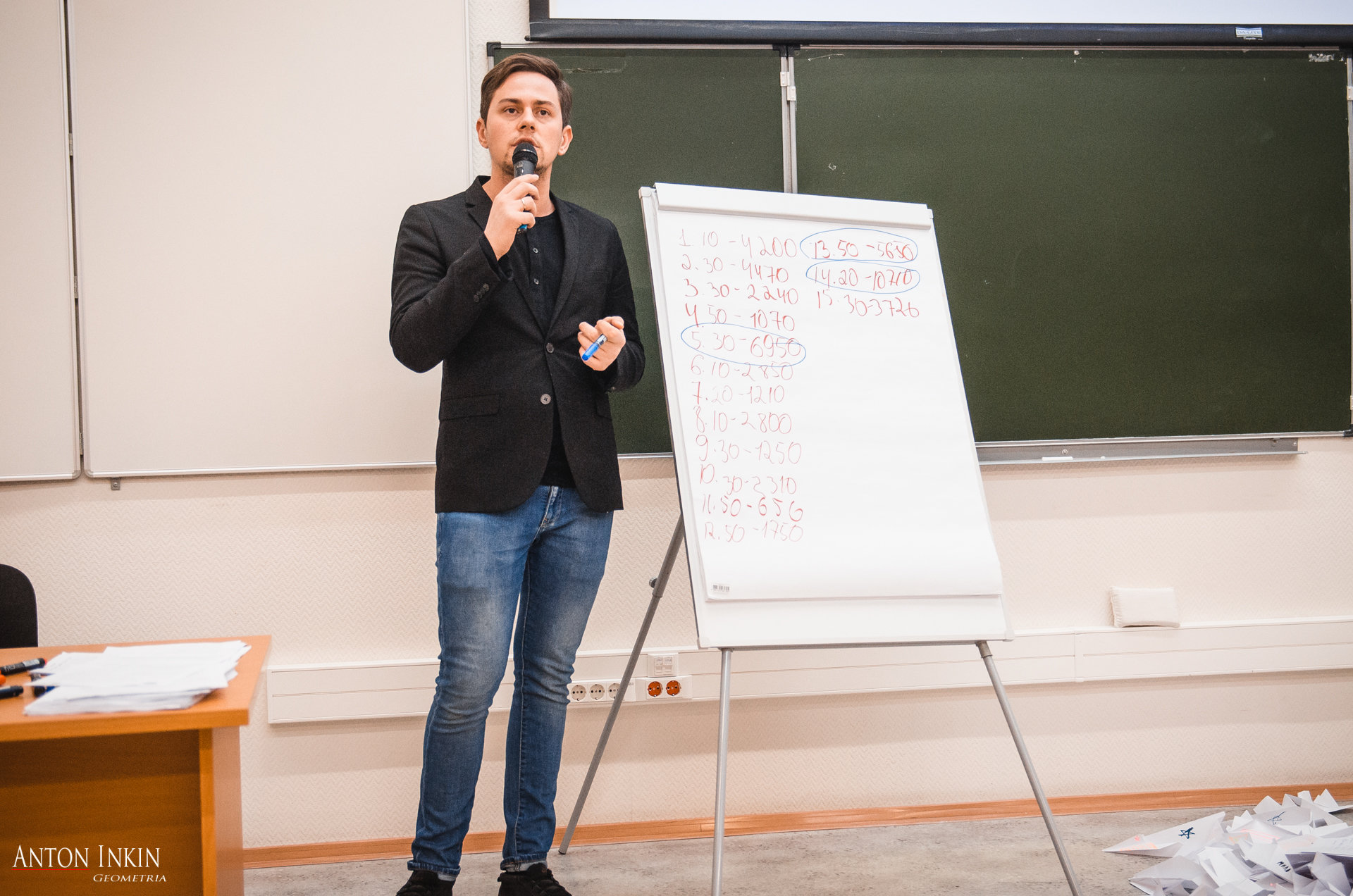 Добиться успеха сложно, если никогда не сталкивался с суровыми реалиями рынка, на котором предстоит построить свой бизнес. Именно поэтому участникам предоставили возможность погрузиться в этот мир в деловой игре «Авиатор», где нужно было заработать как можно больше условных единиц, конструируя, продавая и покупая бумажные самолетики в банке или на черном рынке. Равнодушным игра не оставила никого: студенты работали, продумывали стратегии, хитрили и успешно достигали своих целей.