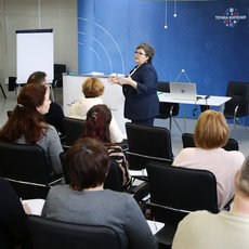 Участниками 36-часовых курсов повышения квалификации стали педагоги из Лянтора, Радужного, Сургута и Сургутского района, Нефтеюганска и Нефтеюганского района, Ханты-Мансийска и Ханты-Мансийского района. В первый день они поделились на две группы. Сначала одни слушатели курсов искали смыслы и формировали мотивы участия в конкурсе. При этом кандидат педагогических наук Шалунова раскрыла югорским педагогам блок нормативных данных, рассказала, как подать заявку на конкурс, каковы критерии оценивания проектов.