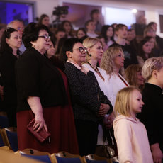 Отдельные слова благодарности ведущие адресовали выпускникам, которые после окончания обучения не теряют связь с альма-матер, становясь ее надежным партнером. Яркий пример тому – руководитель театра моды «Возрождение» Елена Диколенко. Творческий коллектив выпускницы 2022 года подарил собравшимся показ модной коллекции «ХМАО – примите, побудьте, оставьте».
