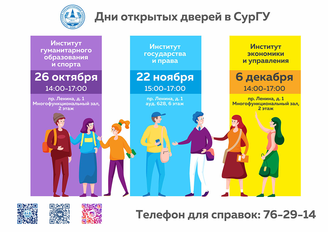 Приглашаем вас на Дни открытых дверей институтов Сургутского государственного университета, которые состоятся:
