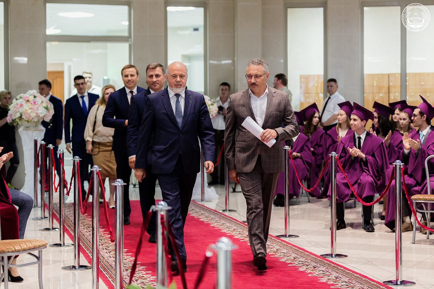 В зале царила праздничная атмосфера. Здесь собрались преподаватели, директора институтов, а также виновники торжества — выпускники и их родители. С напутственными словами и теплыми пожеланиями к уже состоявшимся специалистам обратились ректор СурГУ Сергей Косенок, глава города Сургута Вадим Шувалов, председатель Думы Сургутского района Анатолий Сименяк, заместитель директора департамента образования администрации города Сургута Ольга Иванова, управляющий Сургутским отделением ПАО «Сбербанк» Сергей Кузнецов, председатель ассоциации выпускников Сургутского госуниверситета Давыд Глуховский и другие. Каждый из них желал ребятам легкого пути, востребованности в профессии, продвижения по карьерной лестнице и самое главное, чтобы они трудились на благо людей в родной Югре.