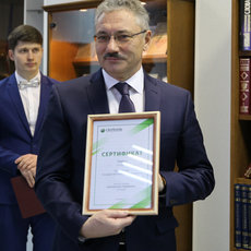 В завершение Сергей Кузнецов вручил ректору университета сертификат и ключи на право пользования электронной серией книг «Библиотека Сбербанка».