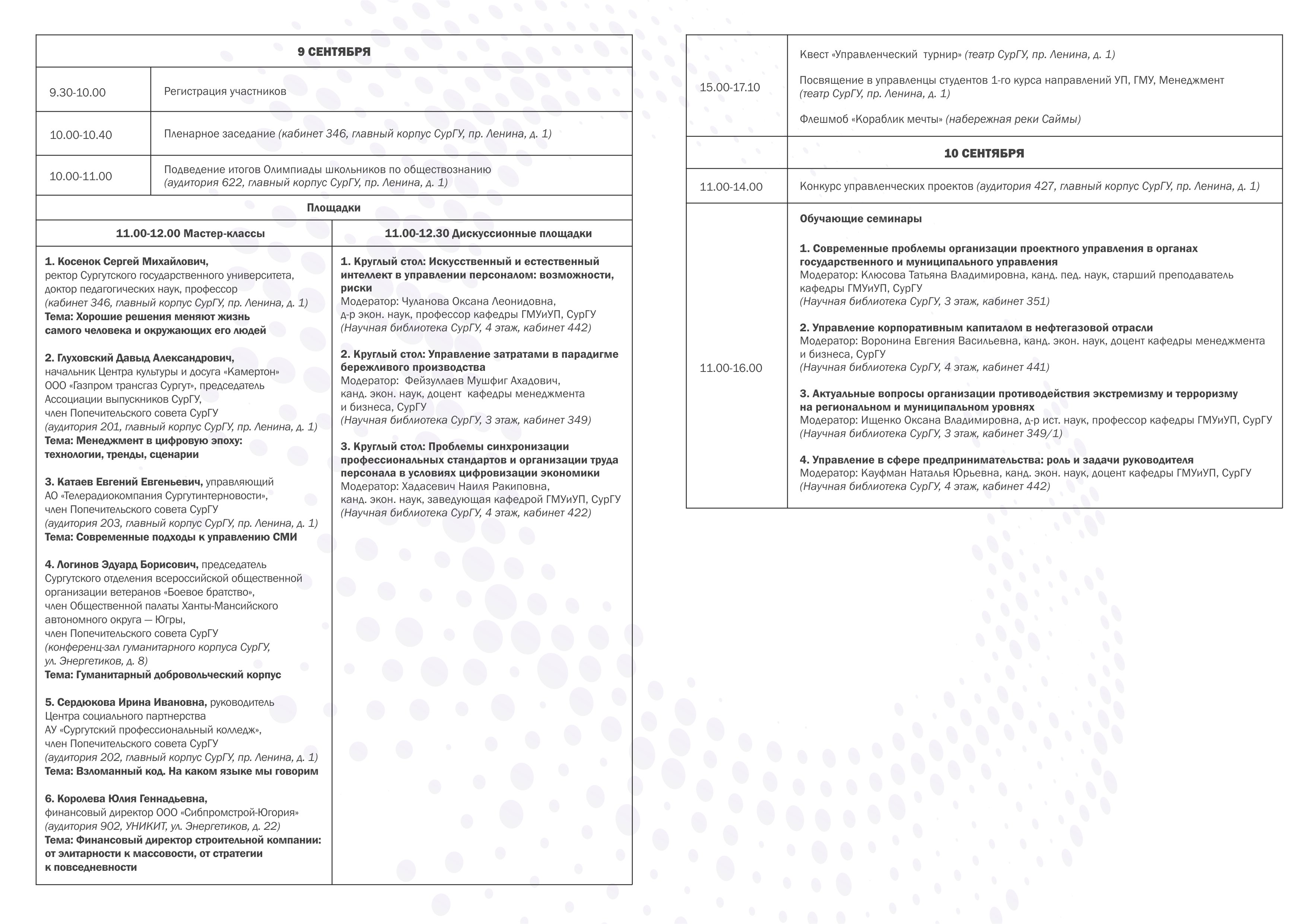 9-10 сентября в Сургутском государственном университете пройдёт I Управленческий форум Ханты-Мансийского автономного округа – Югры «ЛИДЕР (ЛЮДИ. ИДЕИ. ДОСТИЖЕНИЯ. ЕДИНСТВО. РЕЗУЛЬТАТ)»
