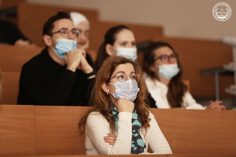 В это же время в ауд. 204 предметом живого разговора участников форума стали вопросы генетики спорта, а также генетики новой коронавирусной инфекции SARS-CoV-2. Эту секцию модерировали доктор медицинских наук, профессор Северо-Западного государственного университета им. И.И. Мечникова Валентина Ларионова и заведующий отделом вирусологии и молекулярно-биологических методов исследований Детского научно-клинического центра инфекционных болезней ФМБА России, старший научный сотрудник отдела геномной медицины Научно-исследовательского института акушерства, гинекологии и репродуктологии им. Д.О. Отта Олег Глотов. Спикеры акцентировали внимание слушателей на методологических подходах в изучении спортивной одаренности, редких заболеваниях, интеграции специалистов в системе здравоохранения. Особый интерес у слушателей вызвали доклады Олега Глотова и Германа Шипулина. В частности, Олег Сергеевич представил анализ спектра генетических вариантов, влияющих на тяжесть коронавирусной инфекции. Современная медицина должна быть настроена не на лечение симптомов, а на комплексное обследование пациента и изучение его генетики. Мультидисциплинарный подход позволит поставить точный диагноз, оказать своевременное лечение пациенту и выстроить маршрутизацию. По словам Олега Сергеевича, пандемия COVID-19 стала двигателем анализа геномных данных. Важным является комплексное исследование молекулярно-генетических основ коронавирусной инфекции. Прямо говорил спикер и о проблемах внедрения геномной медицины в клиническую практику. Биобанки подразумевают ведение генетической карты для каждого гражданина, индивидуальную терапию, внедрение технологии редактирования геномов, а самое главное – сделать раннюю и более точную диагностику. А Герман Александрович в своем выступлении подробно рассказал о том, как молекулярная диагностика COVID-19 проводится в России.