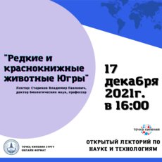 17 декабря 2021 г. в 16:00 в онлайн-формате состоится открытый лекторий по науке и технологиям на тему «Редкие и краснокнижные животные Югры».