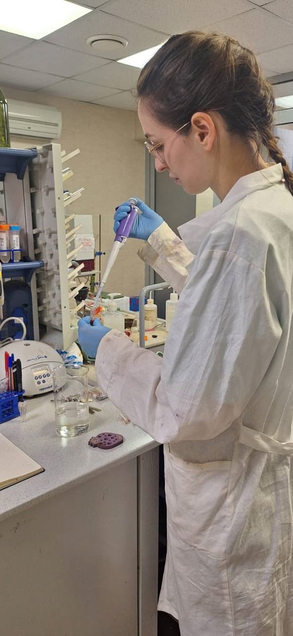Уже три недели она ставит эксперименты по сорбционным процессам двойной системы (гуминовая кислота – оксиды железа (III)), а также проводит ряд работ по изучению токсичности получаемых нанокомпозитов, учится обрабатывать данные сорбции, рентгенофазового анализа, мёссбауэровской спектроскопии (метод ядерного гамма-резонанса, который заключается в резонансном поглощении без отдачи атомным ядром монохроматического гамма-излучения), готовить суспензии для анализа наночастиц оксида железа (III) на z-потенциал. Эти знания аспиранту необходимы для написания диссертации, основанной на реализации проекта «Оценка негативного воздействия нефтяного загрязнения на природные микробоценозы методами биотестирования и молекулярной динамики», поддержанного грантом Российского научного фонда. Команда разработчиков целый год ведет над ним активную работу: занимается поиском эффективных методов ремедиации, основанных на восстановлении микробиома почвы и почвенных систем, загрязненных нефтепродуктами.