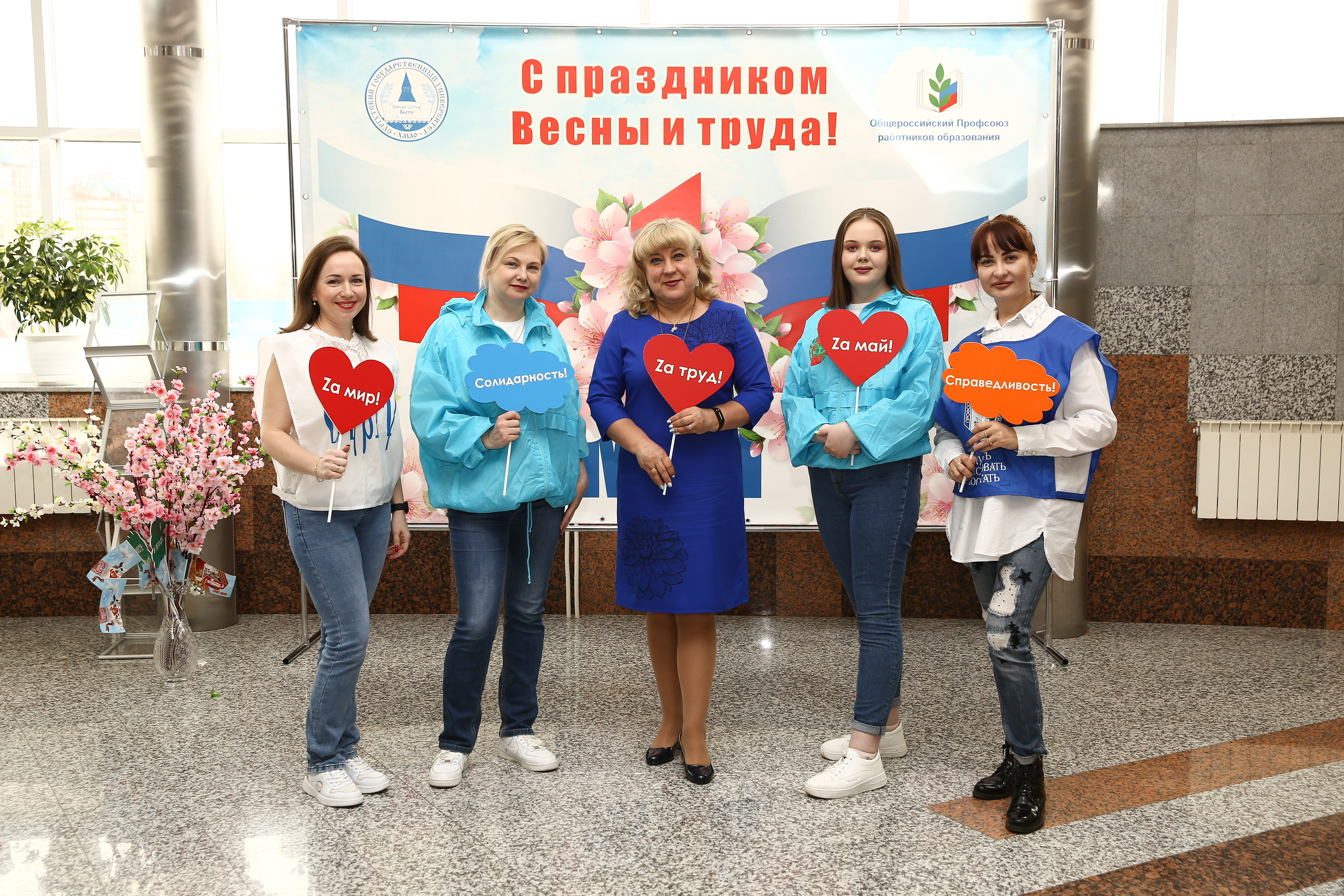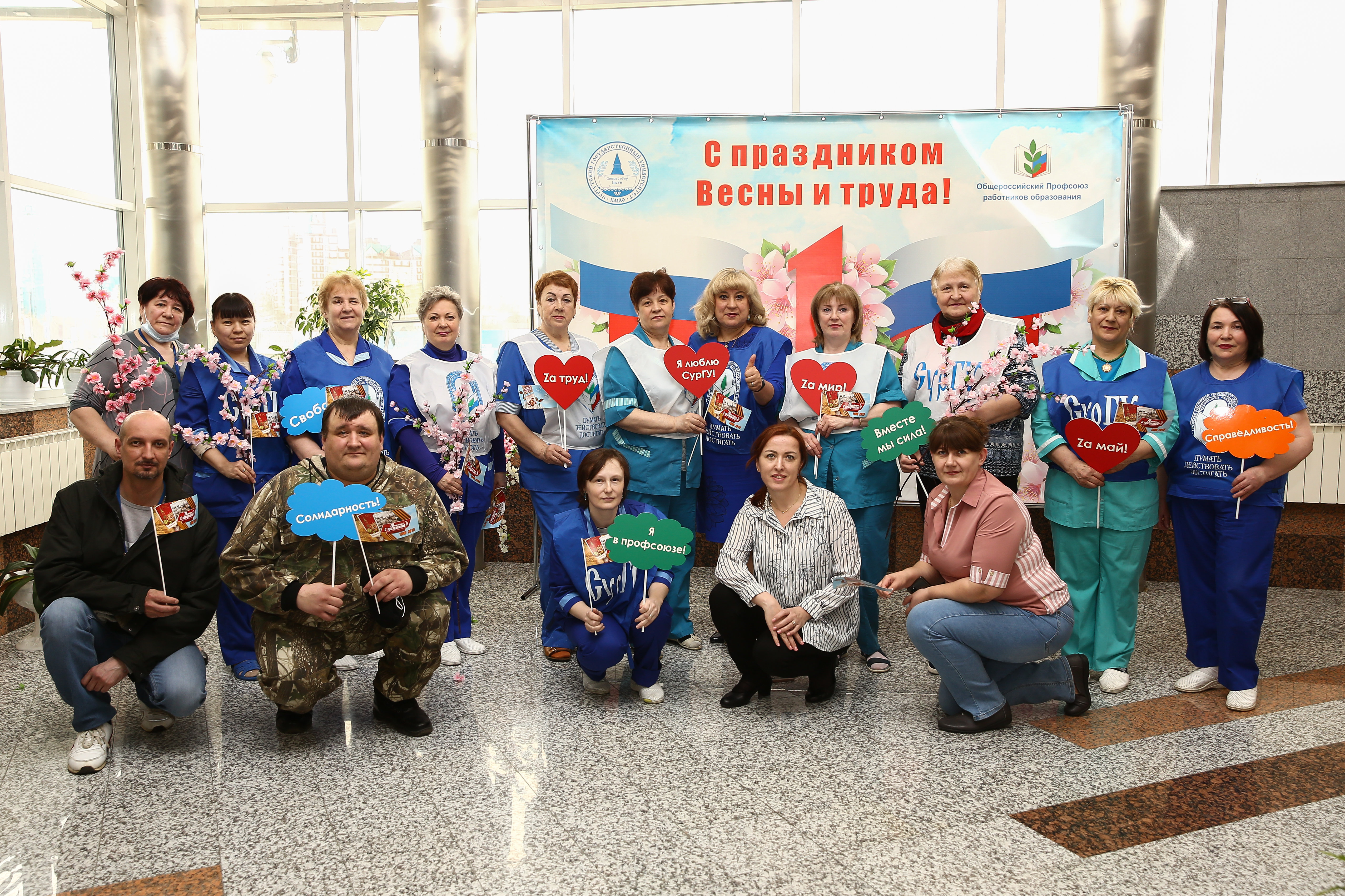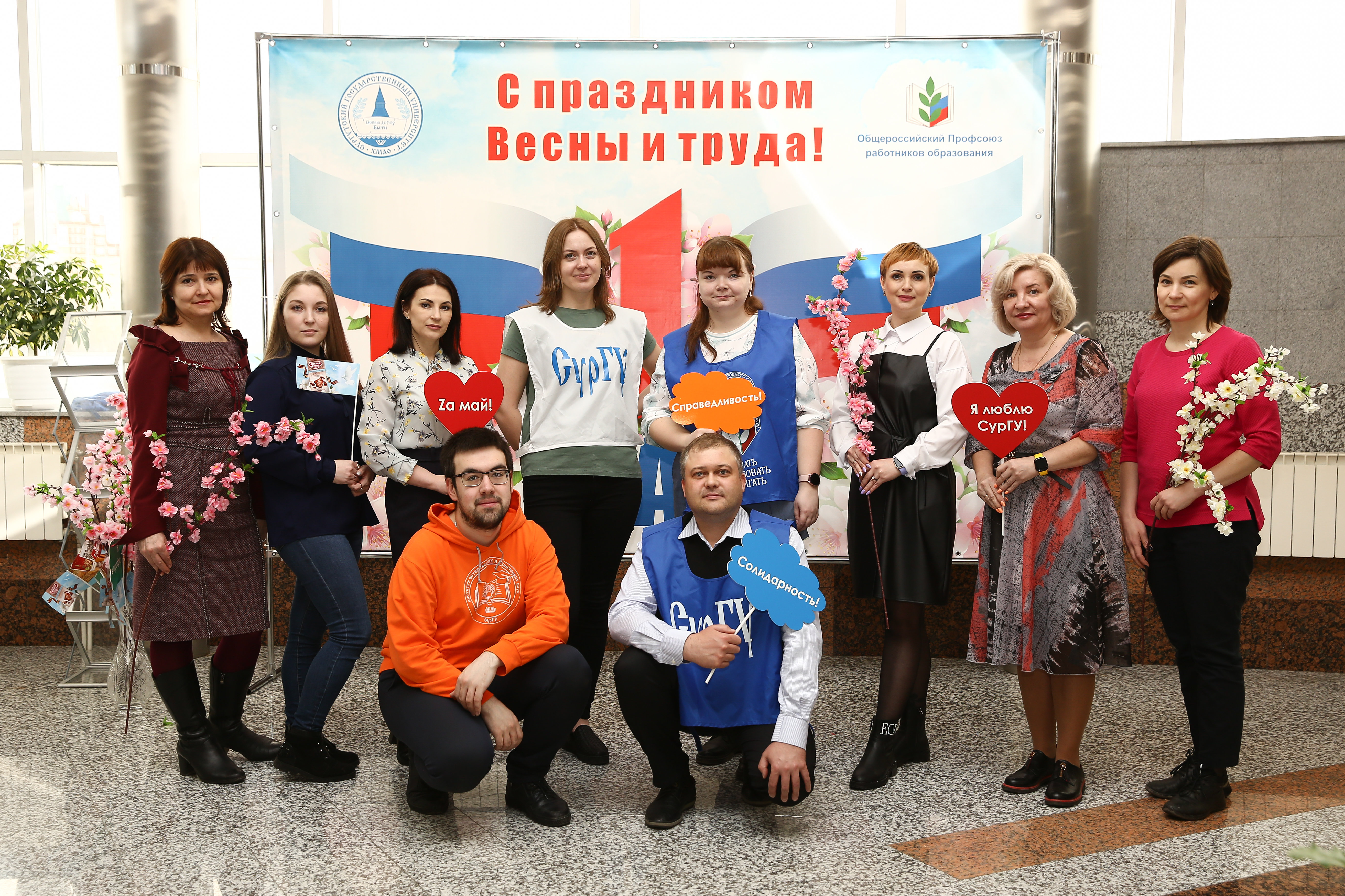 В канун празднования Международного дня солидарности трудящихся представители Профсоюзной организации Сургутского госуниверситета во главе с председателем Ириной Журавель и профсоюзным комитетом в поддержку человека труда, российской армии и Президента РФ Владимира Путина присоединились к акции «ZA МИР! ТРУД! МАЙ! ZA МИР БЕЗ НАЦИЗМА!».