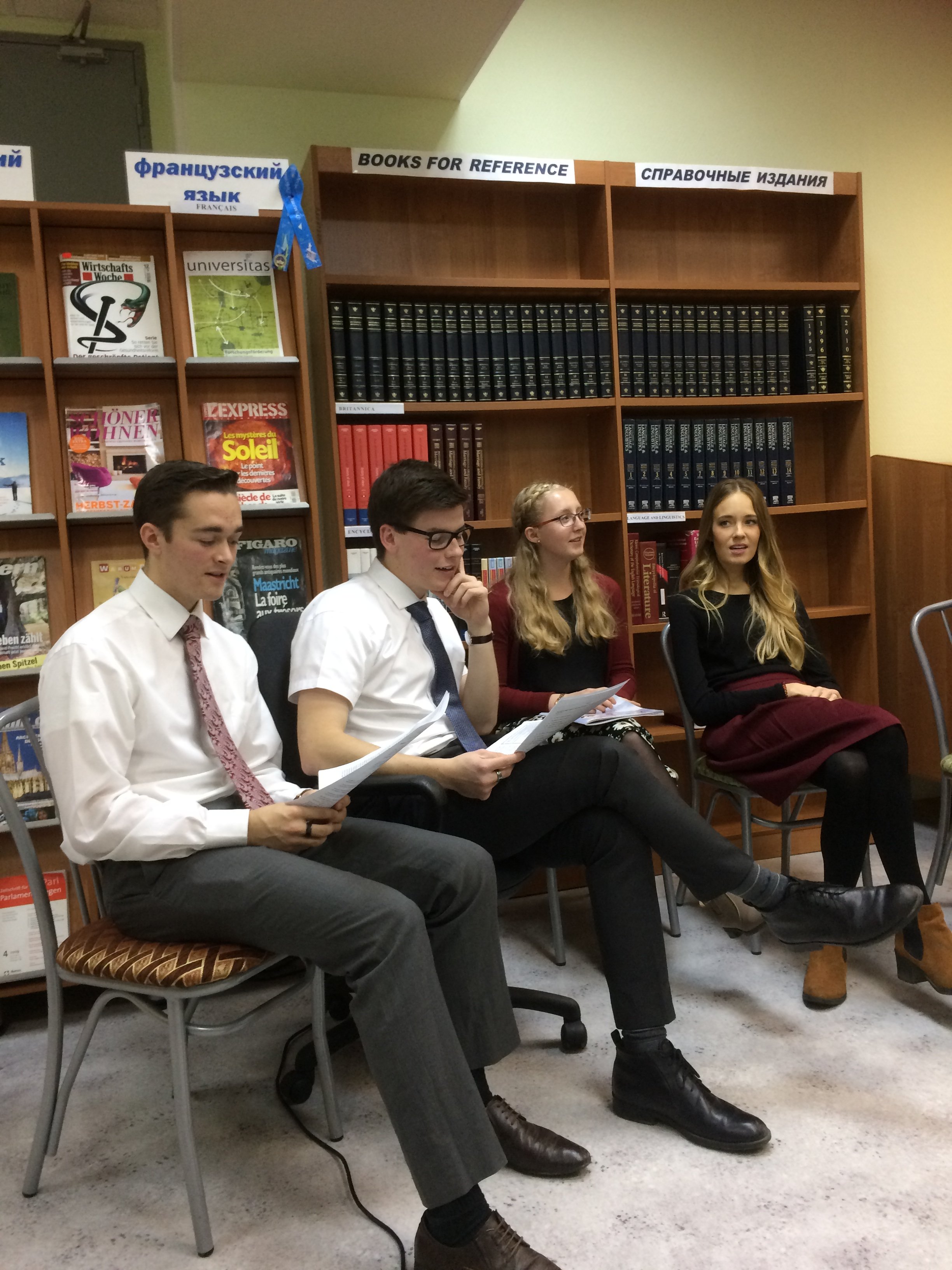 14 октября в зале иностранной литературы состоялась встреча участников интерклуба с гостями из США. Общаясь на английском языке, собравшиеся посмотрели и обсудили видеофильмы о природе штата Юта и достопримечательностях города Солт-Лейк-Сити.