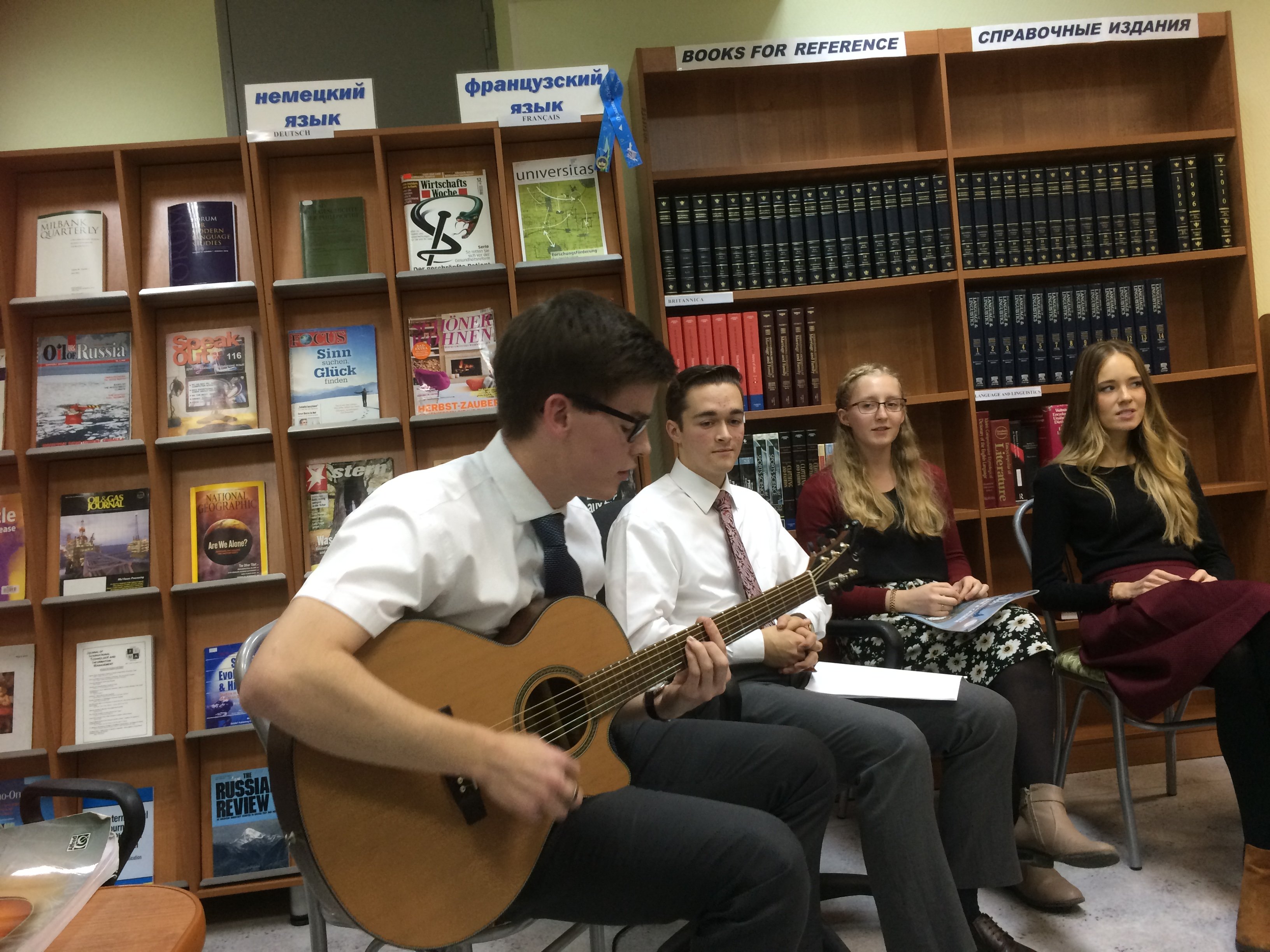 В завершение встречи собравшиеся с энтузиазмом спели гимны России и США, обменялись популярными песнями под гитару. Американским гостям были вручены книги русских поэтов.