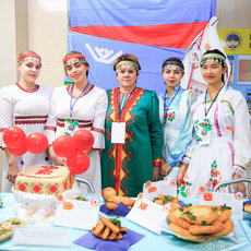 В перерыве участники фестиваля могли полакомиться дарами хлебосольных народов России. На столах, украшенных рукодельными скатертями и салфетками, были выставлены самые лучшие национальные блюда. Гостей встречали студенты в национальных одеждах, которые с удовольствием рассказывали о яствах и обычаях народов, которые они представляли.
