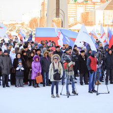 В который раз погода решила испытать студентов на стойкость — утро 4 ноября встретило крепким ноябрьским морозцем. Но это не испортило праздничного настроения. Все началось с шествия от Мемориала славы к площади перед главным корпусом СурГУ. Вместе со студентами этот путь прошли первые руководители города, представители национальных общин, ветераны боевых действий, творческая молодежь. Потом был митинг, поздравления, слова гордости за Великую Россию, радостные песни детей и танец студентов…