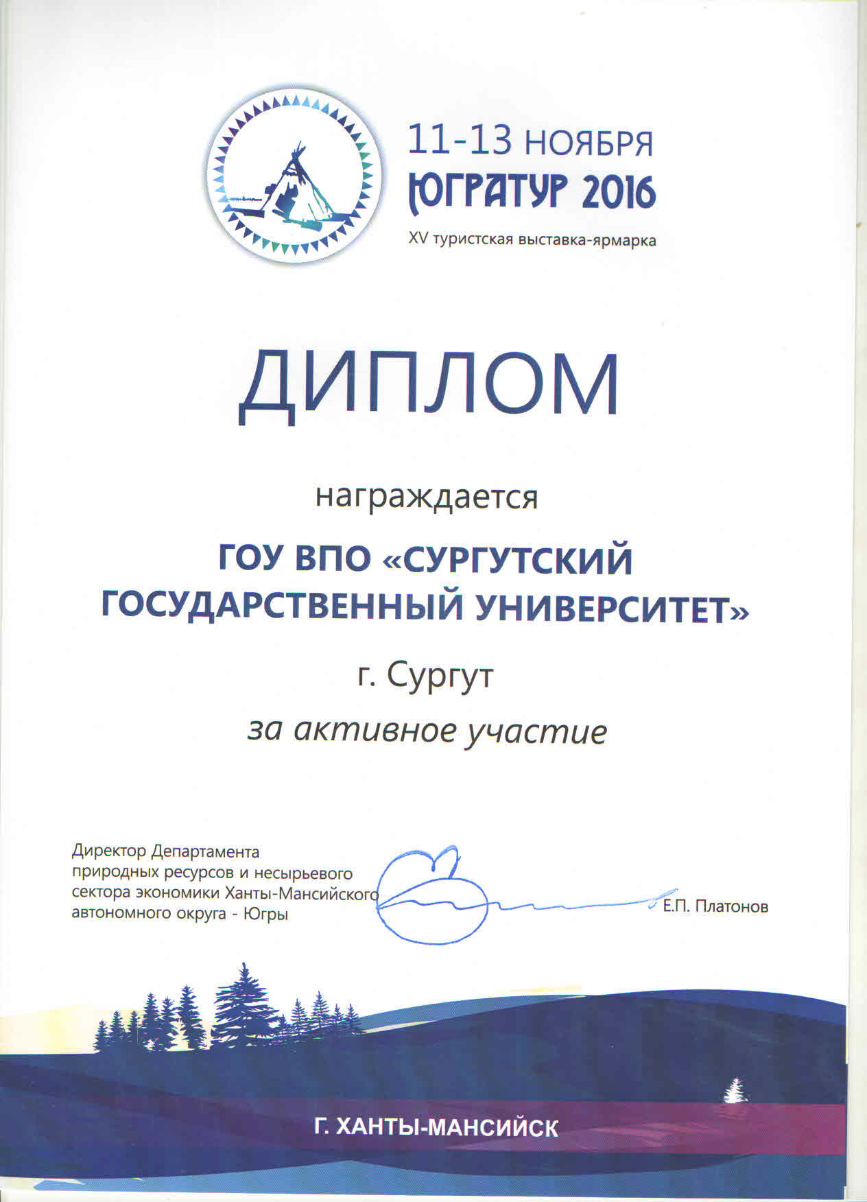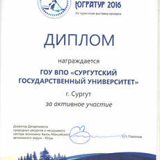 По итогам мероприятия Сургутский государственный университет награжден дипломом за активное участие.