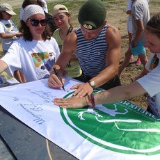 На протяжении всей экспедиции у нас была традиция: директора заповедников и национальных парков оставляли автографы на флагах. Так вот, на закрытии один из флагов торжественно передали в Забайкальский национальный парк.