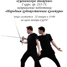 22 января на главной сцене Театра СурГУ состоится показ по дисциплине «Сценическое движение» 2 курса, группы 211-71