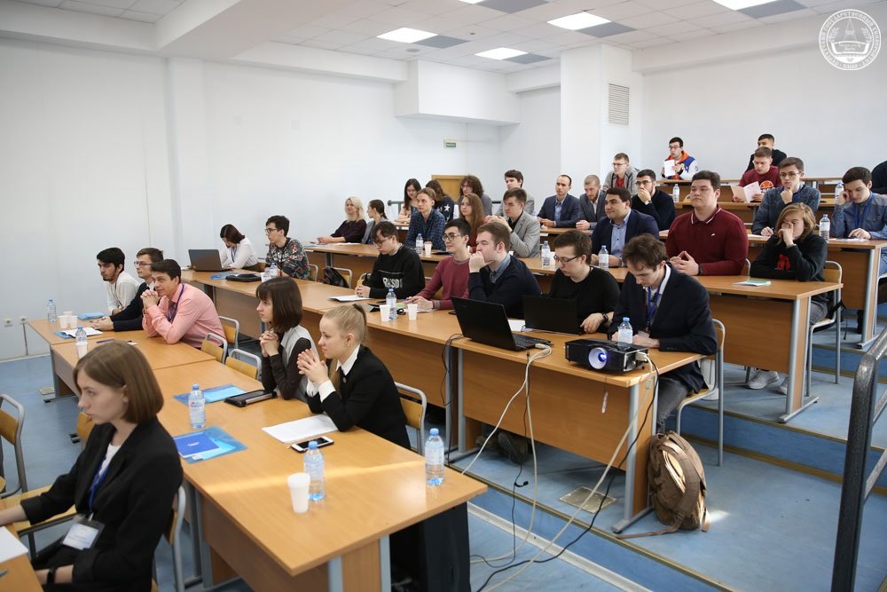 В аудитории собрались студенты-докладчики, гости, студенты СурГУ, врио директора ПИ Дмитрий Федоров, обратившийся с приветственным словом, а также представители оргкомитета под председательством Фёдора Иванова.