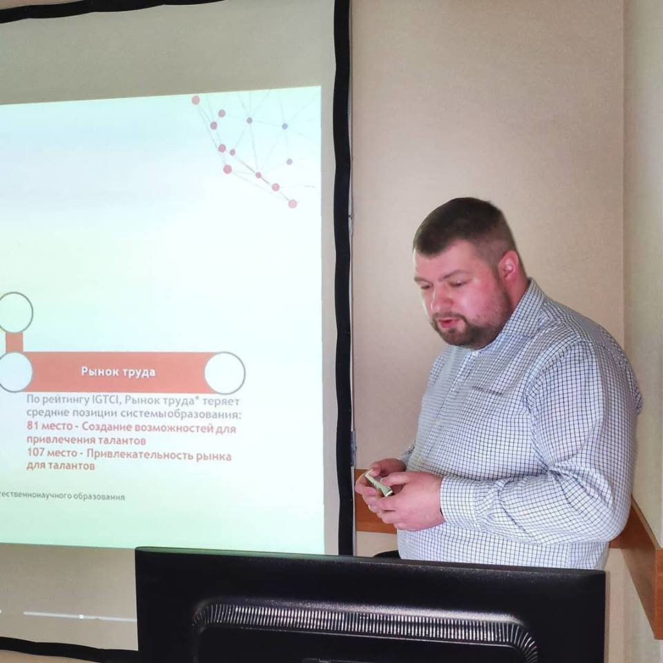 Заместитель начальника департамента Павел Николаевич Юшко рассказал о тенденциях в образовании и изменении реестра актуальных профессий. Тем, кто сейчас получает образование или готовится к поступлению, стоит хорошо подумать над тем, нужны ли будут их профкомпетенции в условиях цифрового общества, и готов ли завтрашний выпускник кардинально пересмотреть подходы к своей работе в случае необходимости. Десятки профессий эксперты относят к теряющим актуальность, а функционал многих других в значительной степени будет выполняться с помощью искусственного интеллекта. Уже сейчас используются технологии, оценивающие вероятность эффективной совместной работы и совместимость людей в группе.