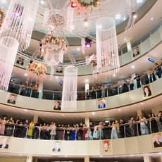 Кавалеры – во фраках, смокингах и даже в военной форме. Грациозные и величественные дамы же под стать партнерам облачились в вечерние платья. Их прически, украшенные аксессуарами, переливались в свете огней так ярко, что отражали легкий румянец на лицах наших красавиц. И вот очаровательные пары под мелодичный аккомпанемент сургутского симфонического оркестра закружились в вальсе, исполняя фигуры полонеза и менуэта. Все это приводило гостей действа Петровской эпохи в полный восторг!