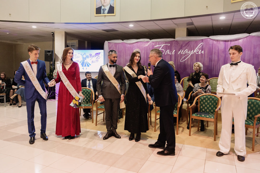 Бал науки открыл ректор СурГУ Сергей Косенок. Он поздравил собравшихся с наступающим Днем российской науки, который празднуют 8 февраля. «Сегодня мы чествуем вас, дорогие студенты, за успехи в научно-исследовательской деятельности, достижения в учебе. В этом году наш бал особенный! Скоро мы будем праздновать 75-летие Великой Победы, и эта тема сегодня обязательно прозвучит, напомнив о школьном выпускном бале лета 1941 года, и, конечно, о Вальсе Победы! Историческая память о Великой Отечественной войне является мощным связующим звеном между поколением победителей и современной молодежью, которая с честью справляется с великой ответственностью: сохранить и передать следующему поколению знания о подвиге советского народа, отстоявшего независимость и свободу своей страны» – сказал Сергей Михайлович.