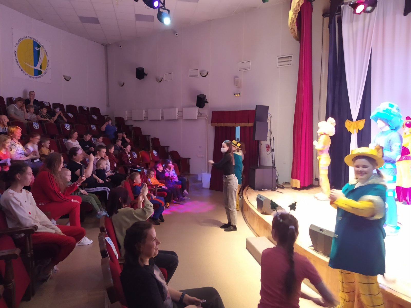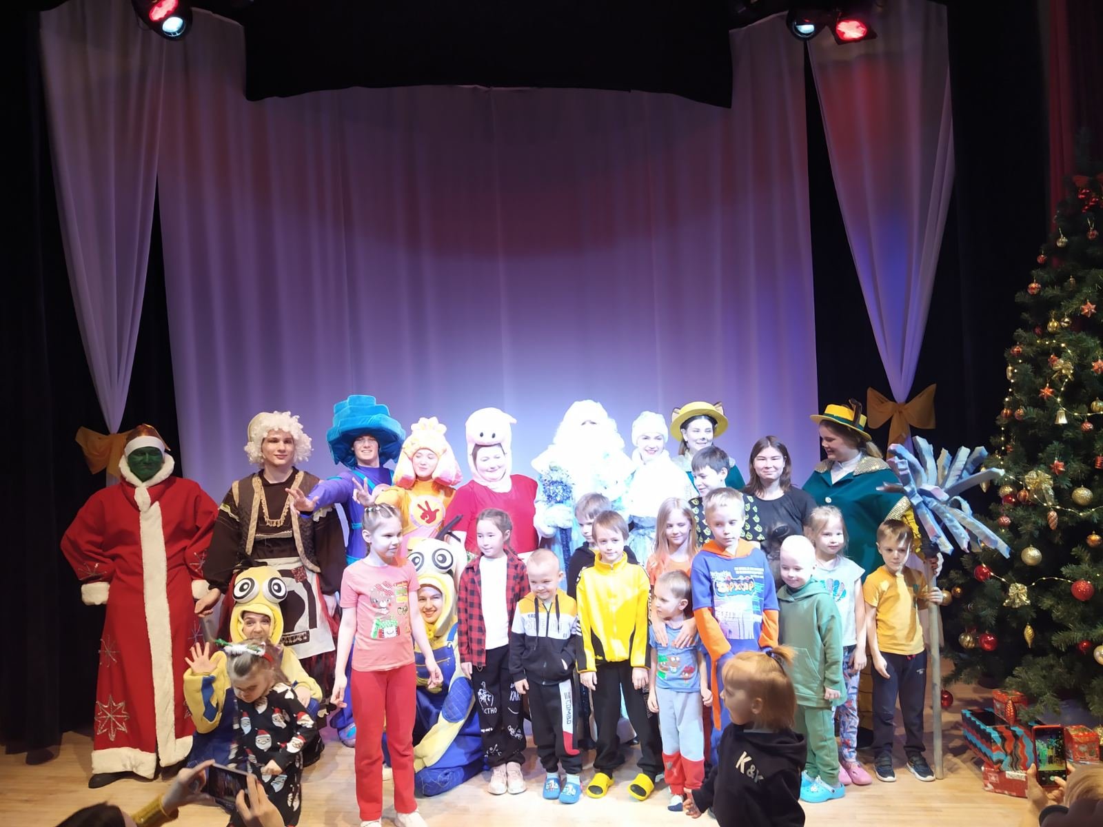 Талантливая игра студентов в костюмах любимых детских персонажей на сцене покорила маленьких зрителей и их родителей. Долго не отпускали дети студентов и устроили фотосессию.