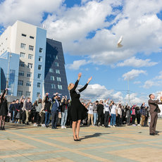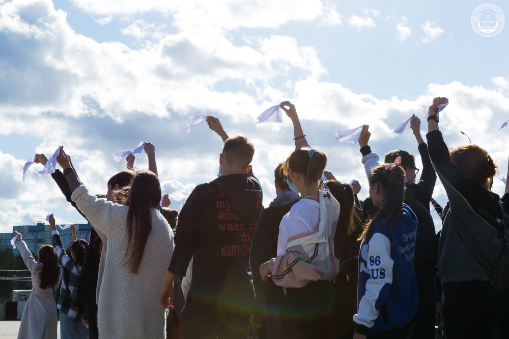 Завершилось мероприятие запуском в небо белых голубей как символа мира и добра и флешмобом: студенты, держа в руках белые платочки с надписью «Беслан 2004–2021», выстроились в слово МИР.