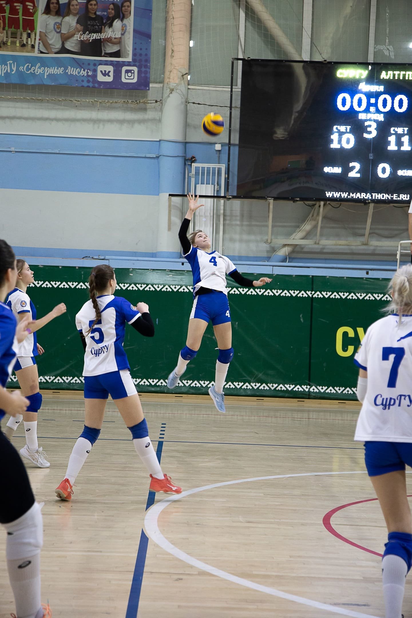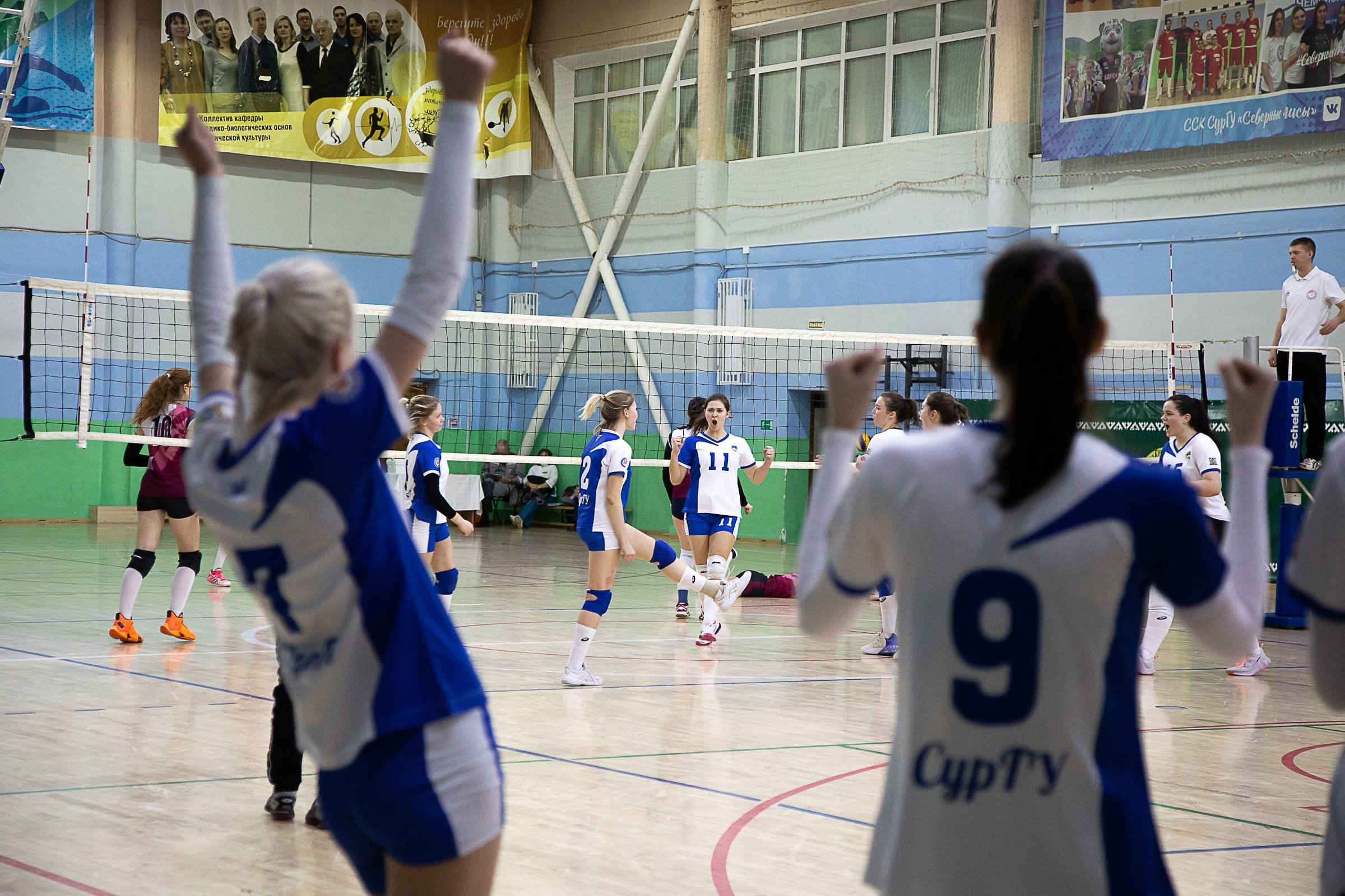 23 февраля открывали спортивный турнир студенты Сургутского государственного университета и Сибирского государственного университета. С первых минут можно было увидеть серьезную борьбу за первенство. Каждый участник команд старался не дать мячу упасть на своей площадке. Итогом игровой встречи стал счет 3:0 в пользу сургутян. Лучшими игроками матча признаны Степанова Полина (СурГУ) и Вересовкина Полина (СибГУ).