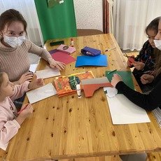 Дети с ОВЗ, находящиеся на лечении в реабилитационном центре для инвалидов, с радостью встретили студентов и воодушевленно принялись изготавливать из цветной бумаги и картона подарки для бабушек и дедушек.