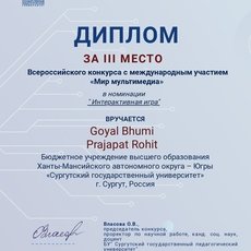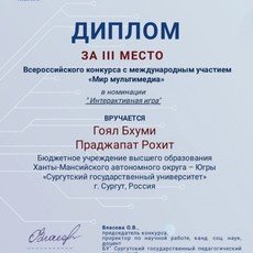 Не так давно ребята приняли участие во Всероссийской научно-практической конференции с международным участием «Технологии организации сопровождения инклюзивного образования» на базе Сургутского государственного педагогического университета, где выступили с докладами по медико-биологическим и психолого-педагогическим аспектам сопровождения обучающихся в инклюзивном образовании. Кроме того, студентки первого и второго курса направления «лечебное дело» Бхуми Гоял и Рохит Праджапат заняли третье место в номинации «Интерактивная игра» Всероссийского конкурса с международным участием «Мир мультимедиа».