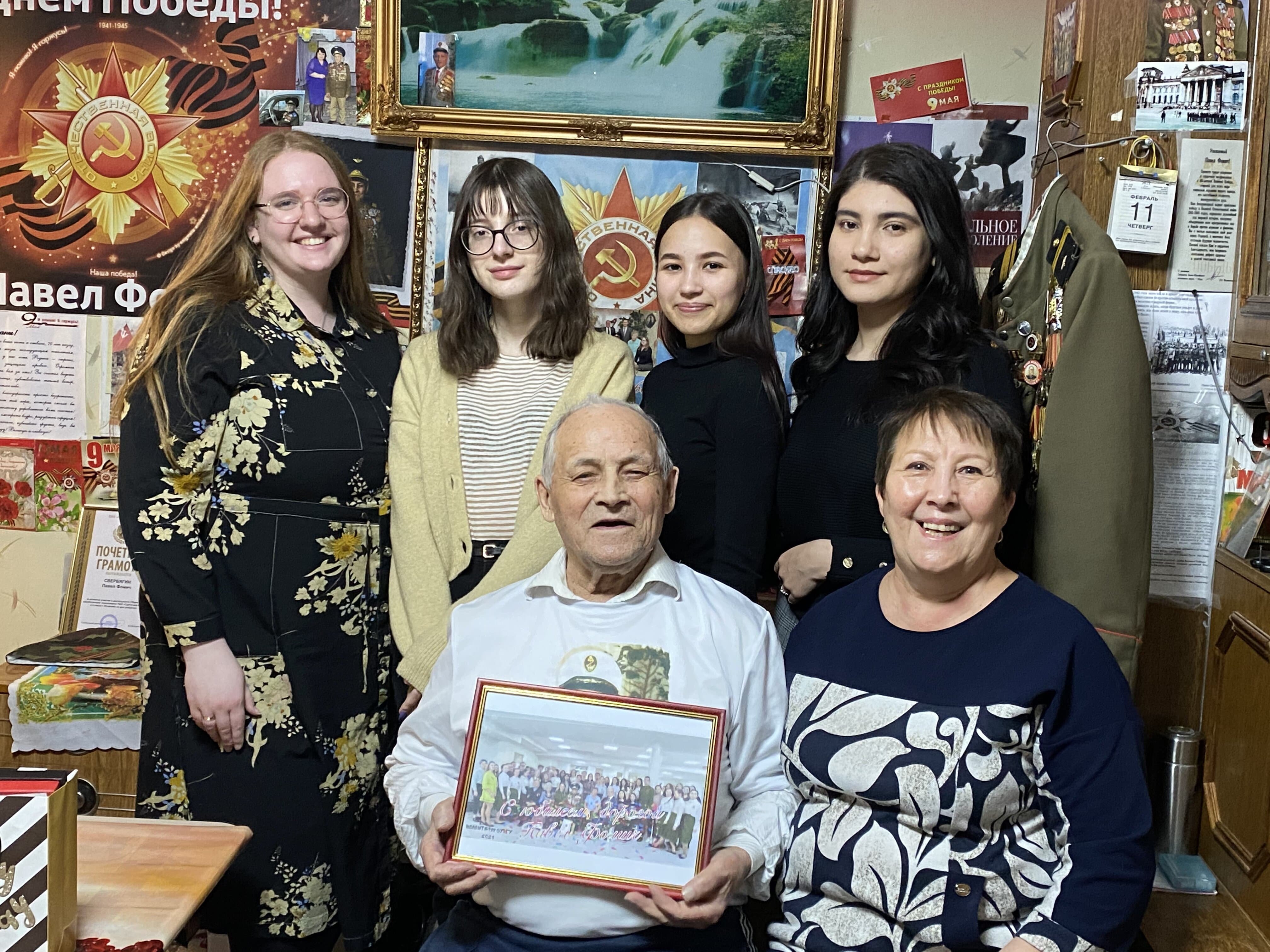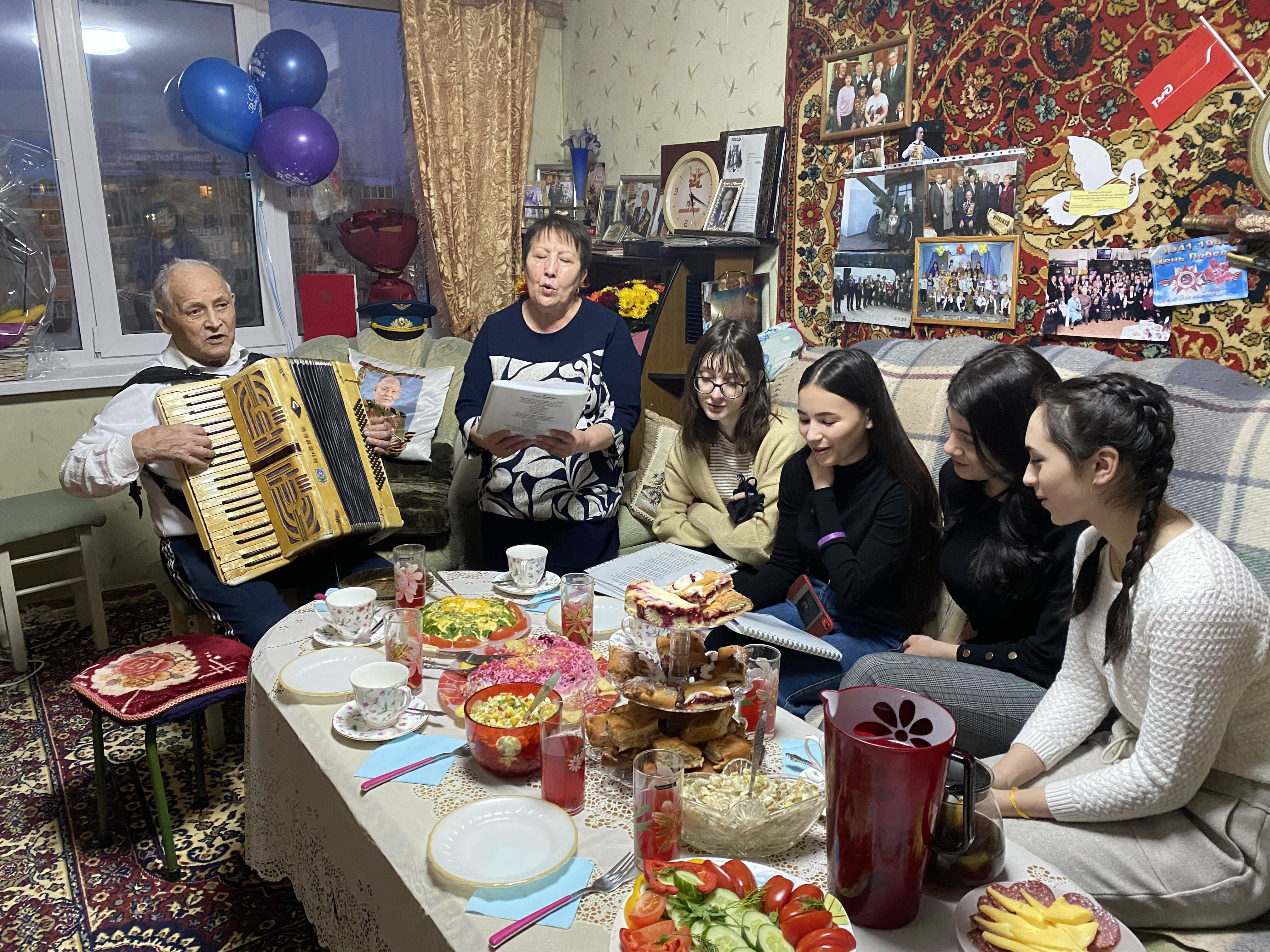 Студенты-волонтеры направления «лингвистика» ИГОиС СурГУ организовали поздравление ветерана Великой Отечественной войны Свербягина Павла Фомича с 95-летним юбилеем в рамках социального проекта «ДОБРО СПАСЕТ МИР»