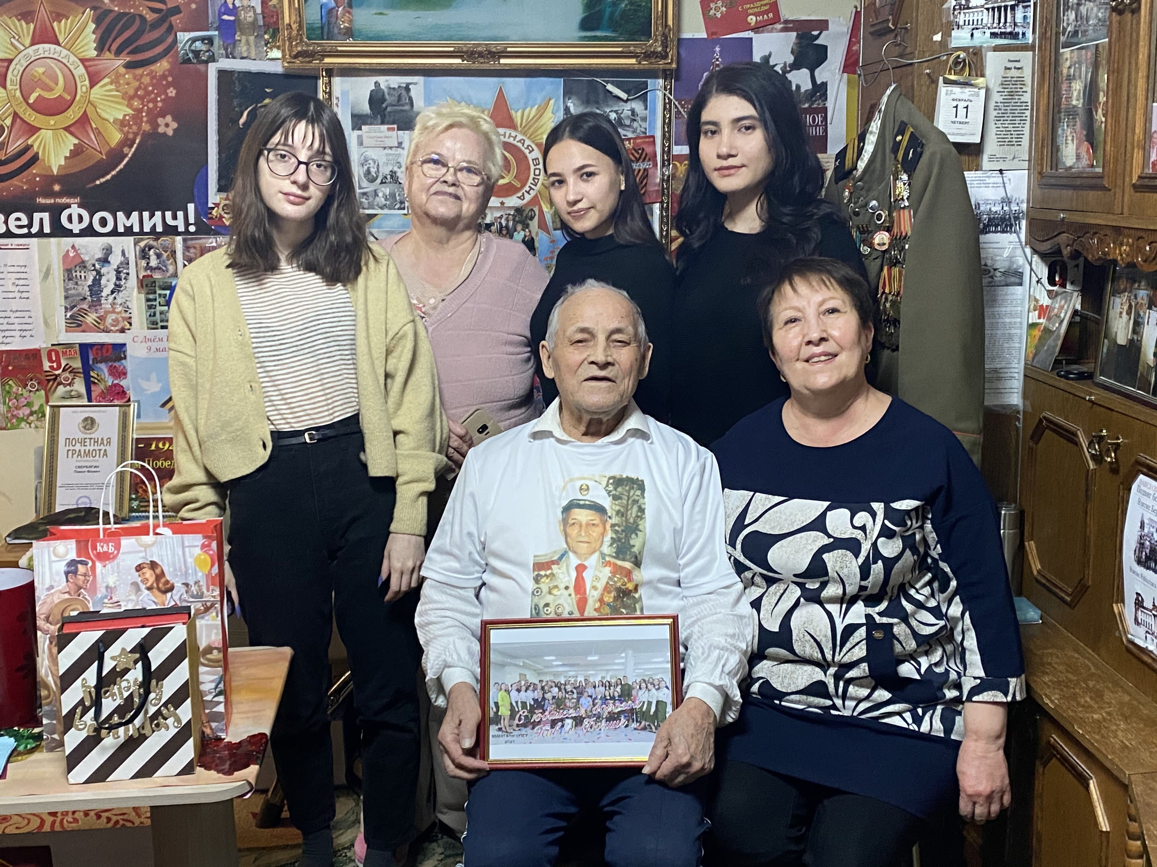 Студенты-волонтеры направления «лингвистика» навестили и поздравили ветерана с юбилеем. Павел Фомич и его супруга Александра Ивановна тепло поблагодарили студентов за поздравления и подарки. У ветерана была возможность поговорить с молодым поколением, спеть песни, рассказать о своей нелегкой военной жизни.