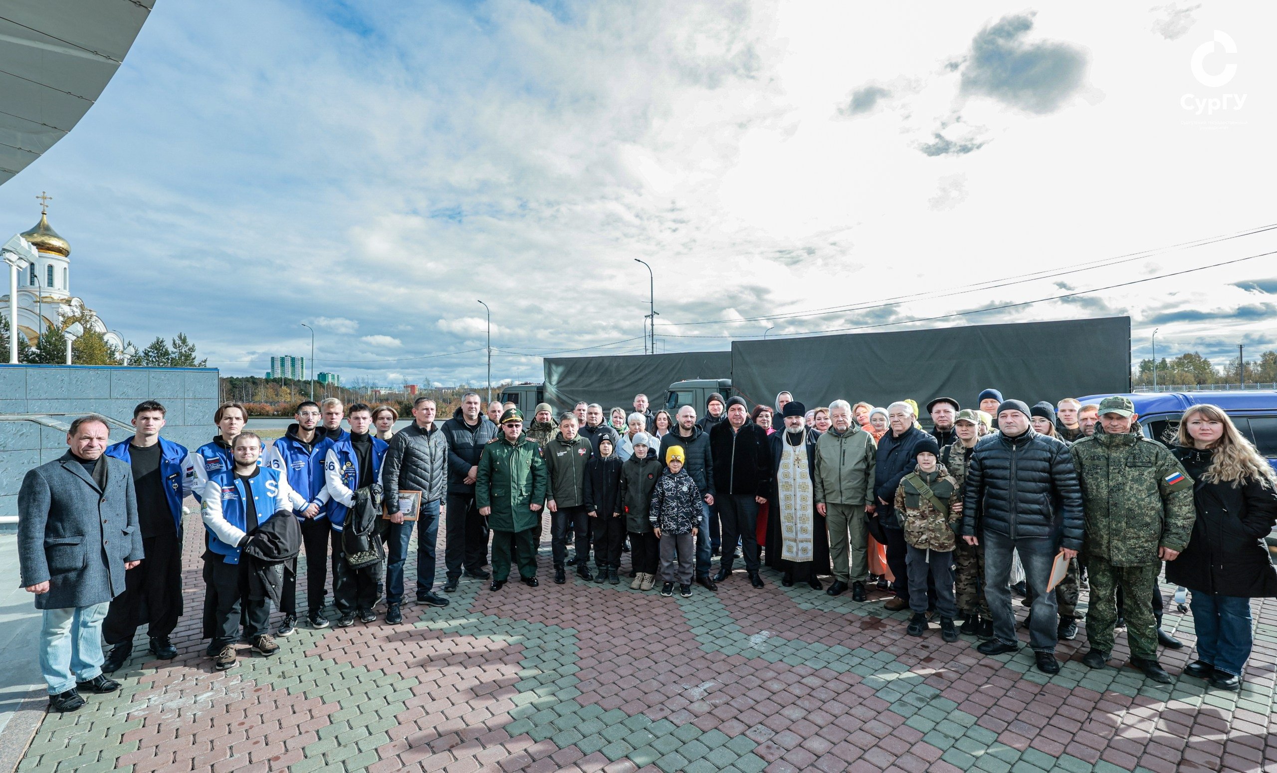 «Все для фронта, все для Победы»: на территории СурГУ состоялась передача гуманитарного груза в зону СВО
