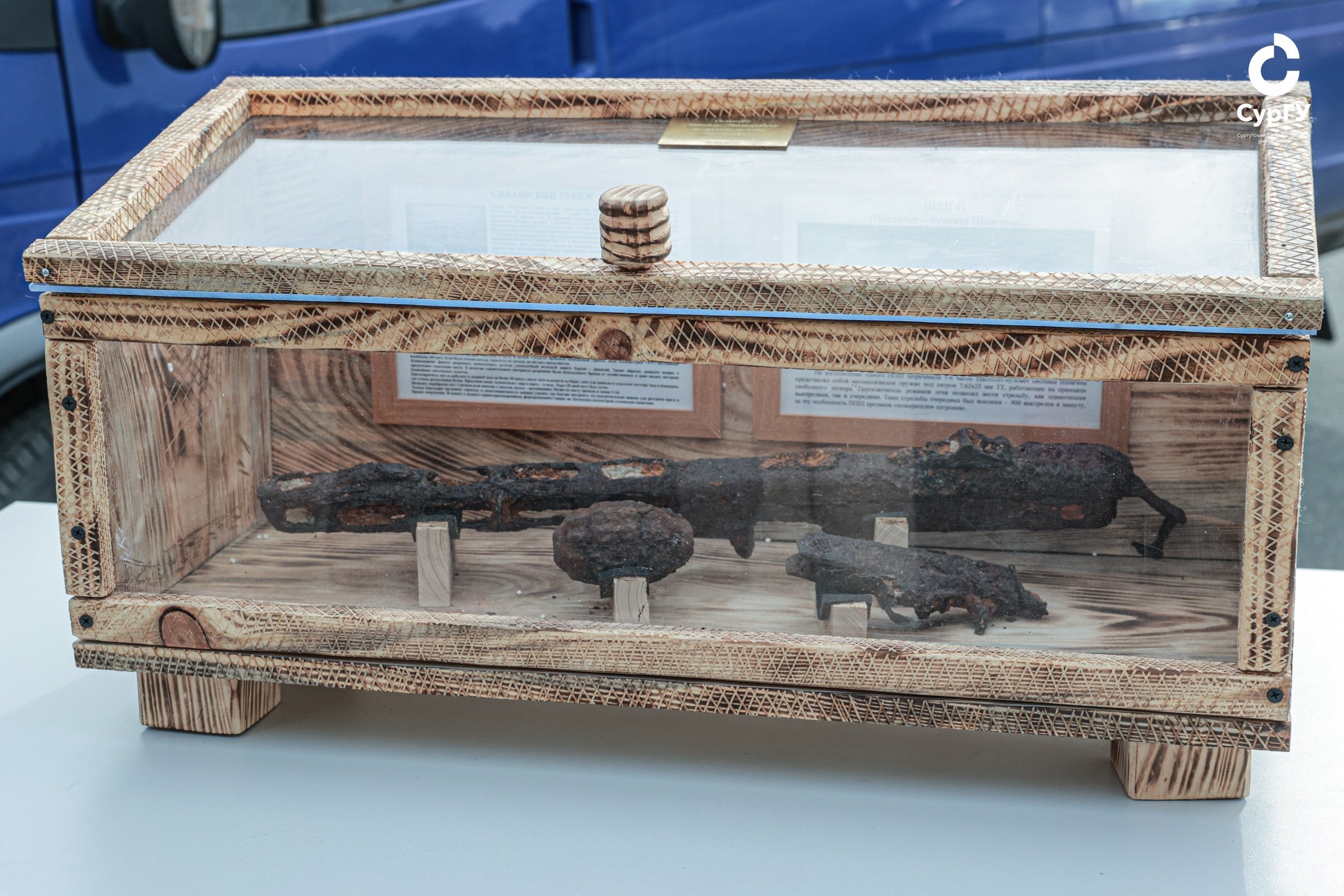 В ходе церемонии отправки гуманитарного груза Сургутскому госуниверситету был передан археологический артефакт времен Великой Отечественной войны, обнаруженный нашими бойцами при строительстве окопа под Новониколаевкой в ДНР, – пистолет-пулемет Шпагина, который был найден с телом бойца.