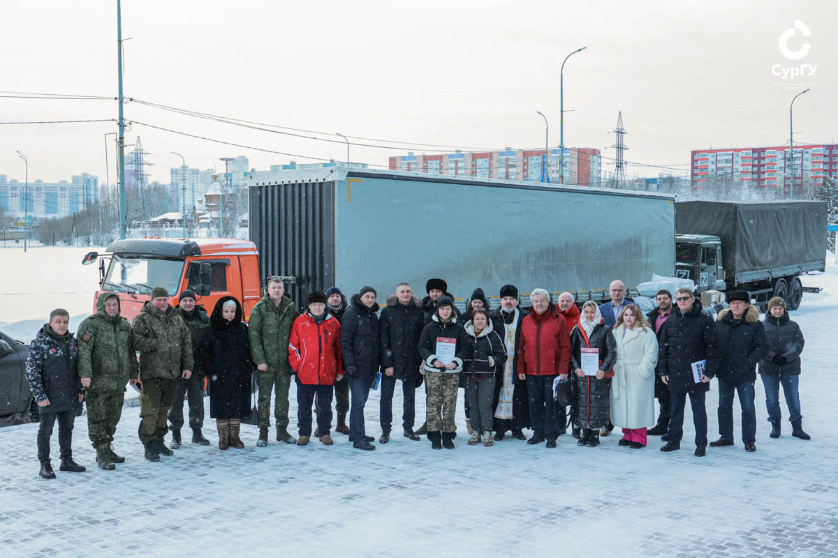 В гуманитарный груз вошли разнообразные расходные материалы, нужные на фронте: автошины, металл для обварки бронетехники, автомасла, сварочные электроды. В составе новогоднего конвоя, кроме всего прочего, один дрон, два внедорожника и три грузовика, один из которых – грузоподъемностью в 40 тонн. Собранная помощь отправляется подразделениям под командованием Виктора Балацана, нашего земляка, который по видеосвязи поздравил с наступающим Новым годом участников и организаторов сбора. Отметим также, что в середине декабря Сургутский госуниверситет передал в зону СВО пилораму для работы с древесиной.