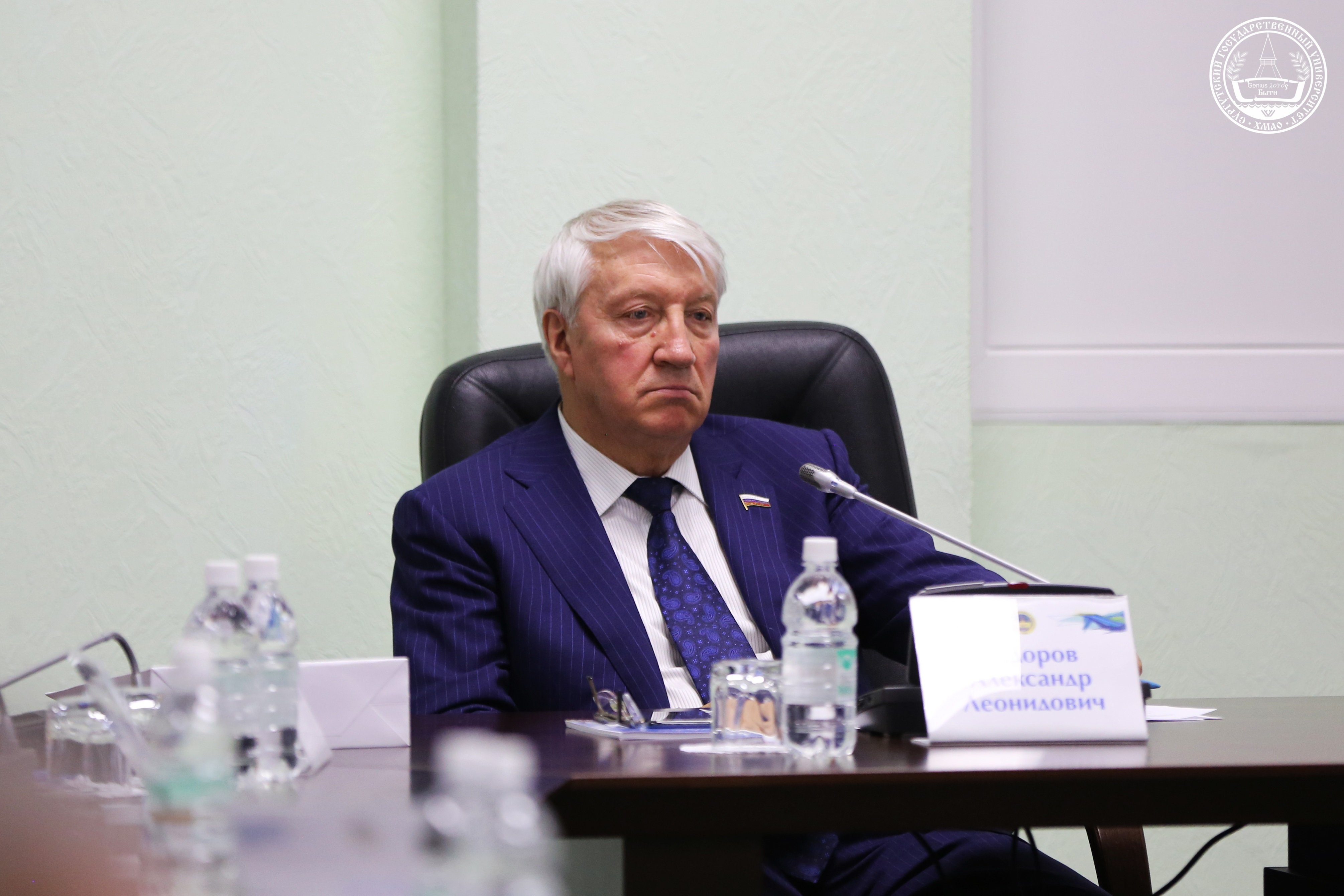 Возглавил заседание депутат Государственной Думы, председатель Попечительского совета Александр Сидоров. Александр Леонидович поприветствовал собравшихся, пожелал плодотворного диалога, посвященного развитию высшего регионального образования.