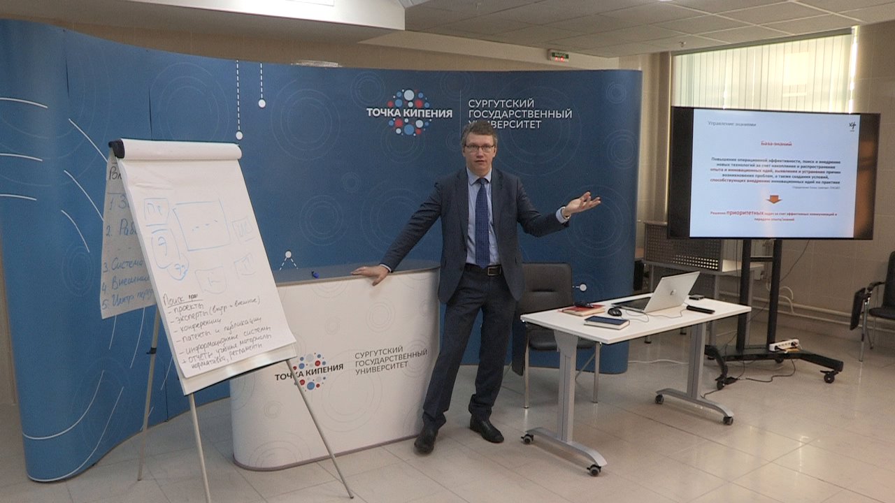 «Вопрос управления знаниями становится все актуальнее из-за увеличения потоков информации и количества задач, которые в компании необходимо решать в кратчайшие сроки. Вопросы, которые ставятся в этой области исследования, кажутся очевидными, но системность в подходе к управлению знаниями может дать измеримый результат. Цель сегодняшней сессии – сформировать концепцию по управлению знаниями для сургутского ядра Центра развития компетенций НОЦ «Западно-Сибирский» – отметил начальник управления по науке и инновациям СурГУ Владимир Терещенко.
