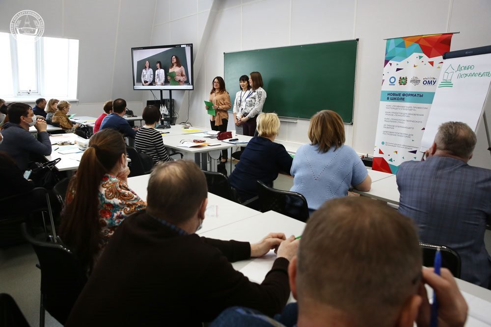 Открыла серию образовательного интенсива установочная сессия «Образ современных участников образовательного процесса». Спикерами курсов стала команда Открытого молодежного университета из Томска: методист отдела образовательных программ Наталья Кривошапкина, методист по инновационным методикам и лучшим практикам проектного офиса проекта «Территория интеллекта» Изабелла Рыжкина, методист по разработке контента проектного офиса проекта «Территория интеллекта» Лариса Глушкова.