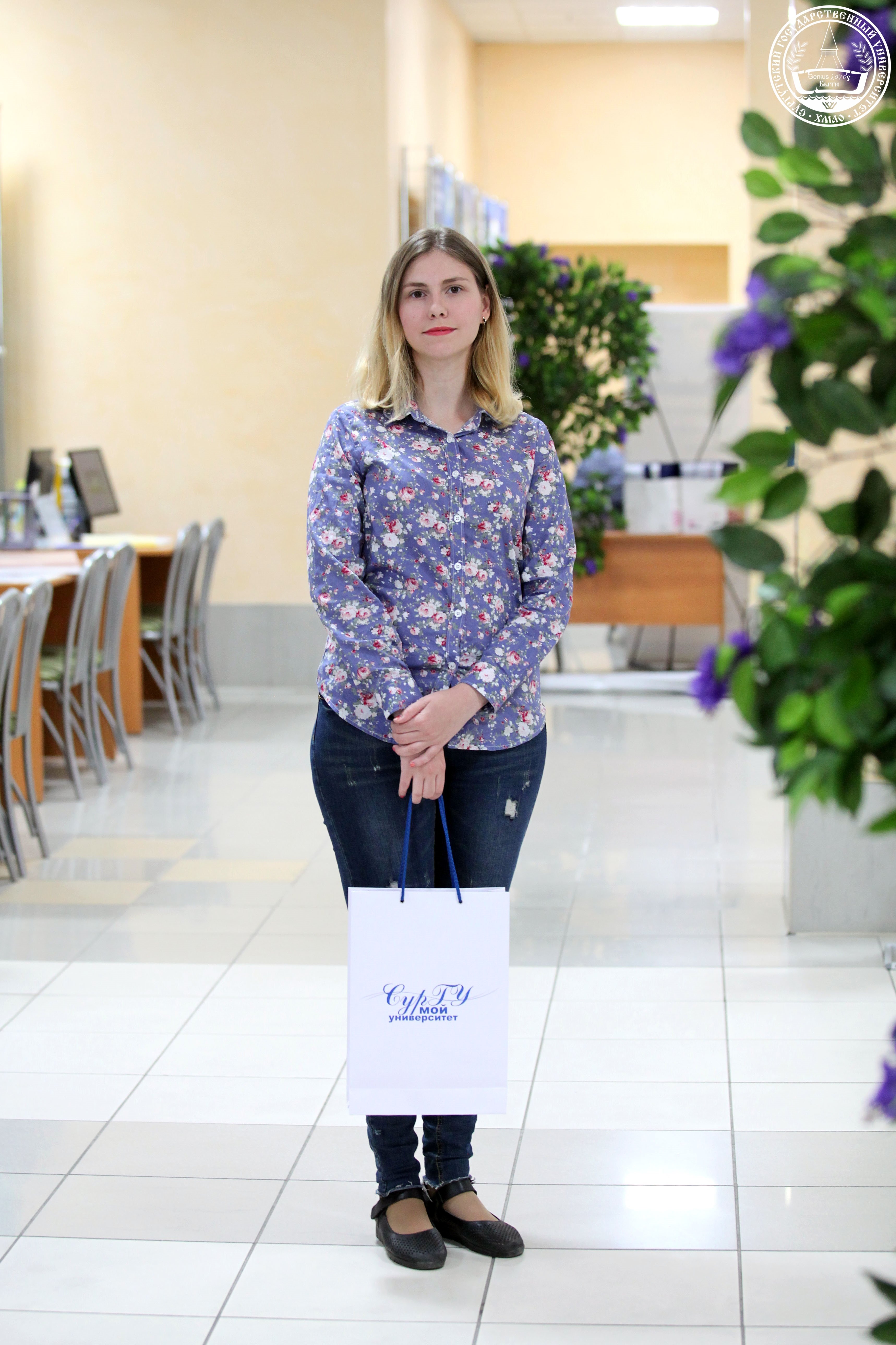 — «Мама у меня учитель рисования и мировой художественной культуры. Я с детства мечтала пойти по ее стопам, быть дизайнером и параллельно обучать детей этому искусству. Я привыкла испытывать себя на прочность, работать над собой. Именно участие в научных конференциях, олимпиадах, а также призерство на окружных и всероссийских конкурсах дает тот самый толчок — стремиться и добиваться лучшего. Горжусь, что частично мои дизайнерские разработки легли в основу создания логотипа медалей и фирменного стиля футбольных стадионов к чемпионату мира по футболу — 2018. Надеюсь, что мое портфолио, знания и навыки помогут пройти конкурс, и я стану студенткой СурГУ. От обучения жду развития своих способностей и личностного роста. Уверенна, этот университет может мне все это дать».