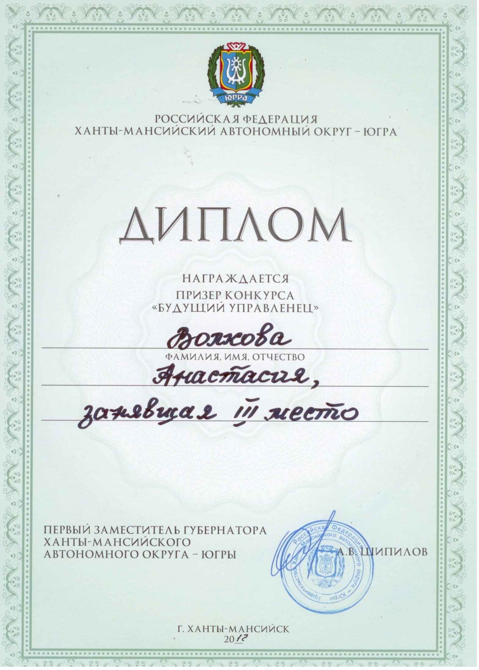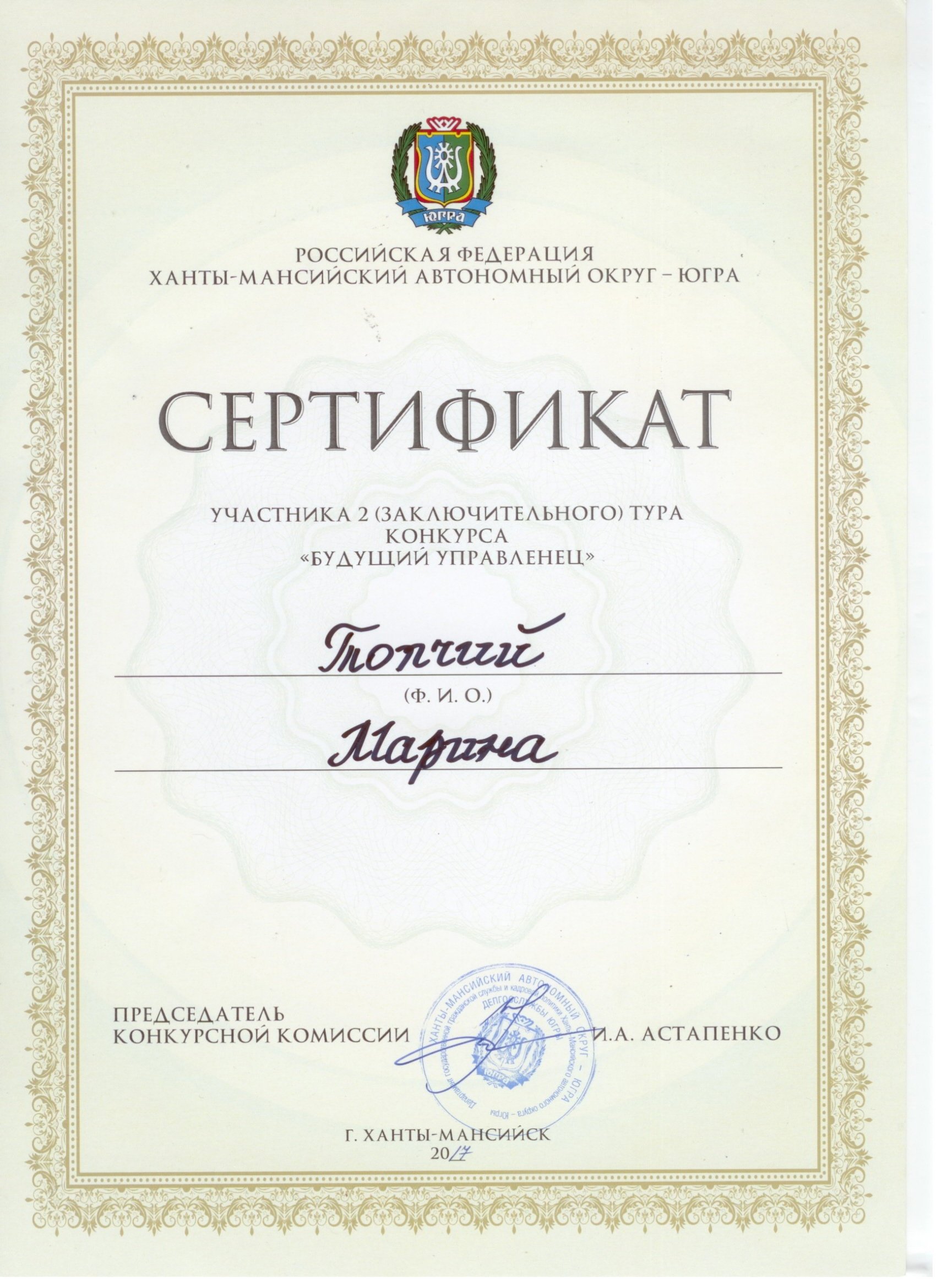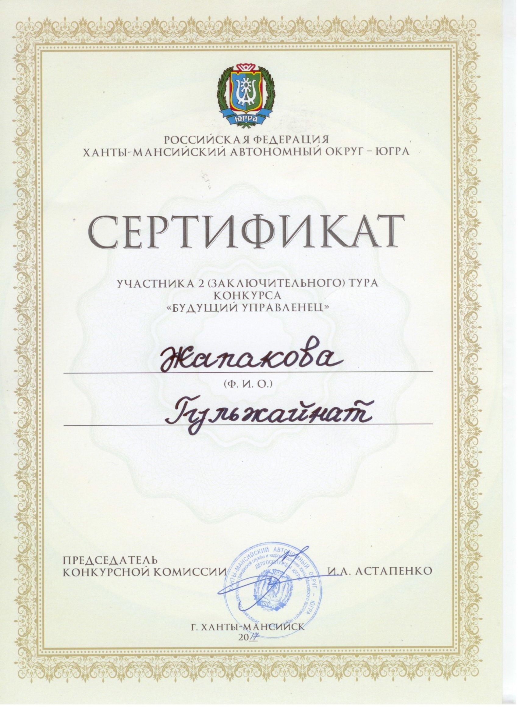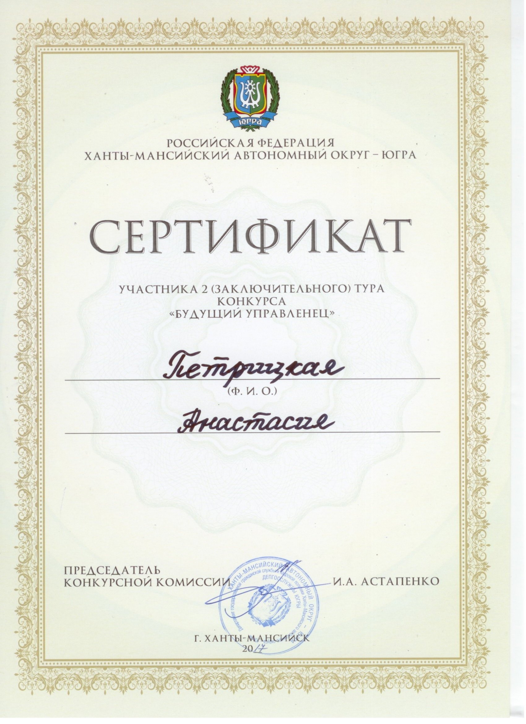 30 ноября 2017 г. в городе Ханты-Мансийске проходил конкурс «Будущий управленец». В конкурсе приняли участие студенты СурГУ 1–4-х курсов направления государственное и муниципальное управление.