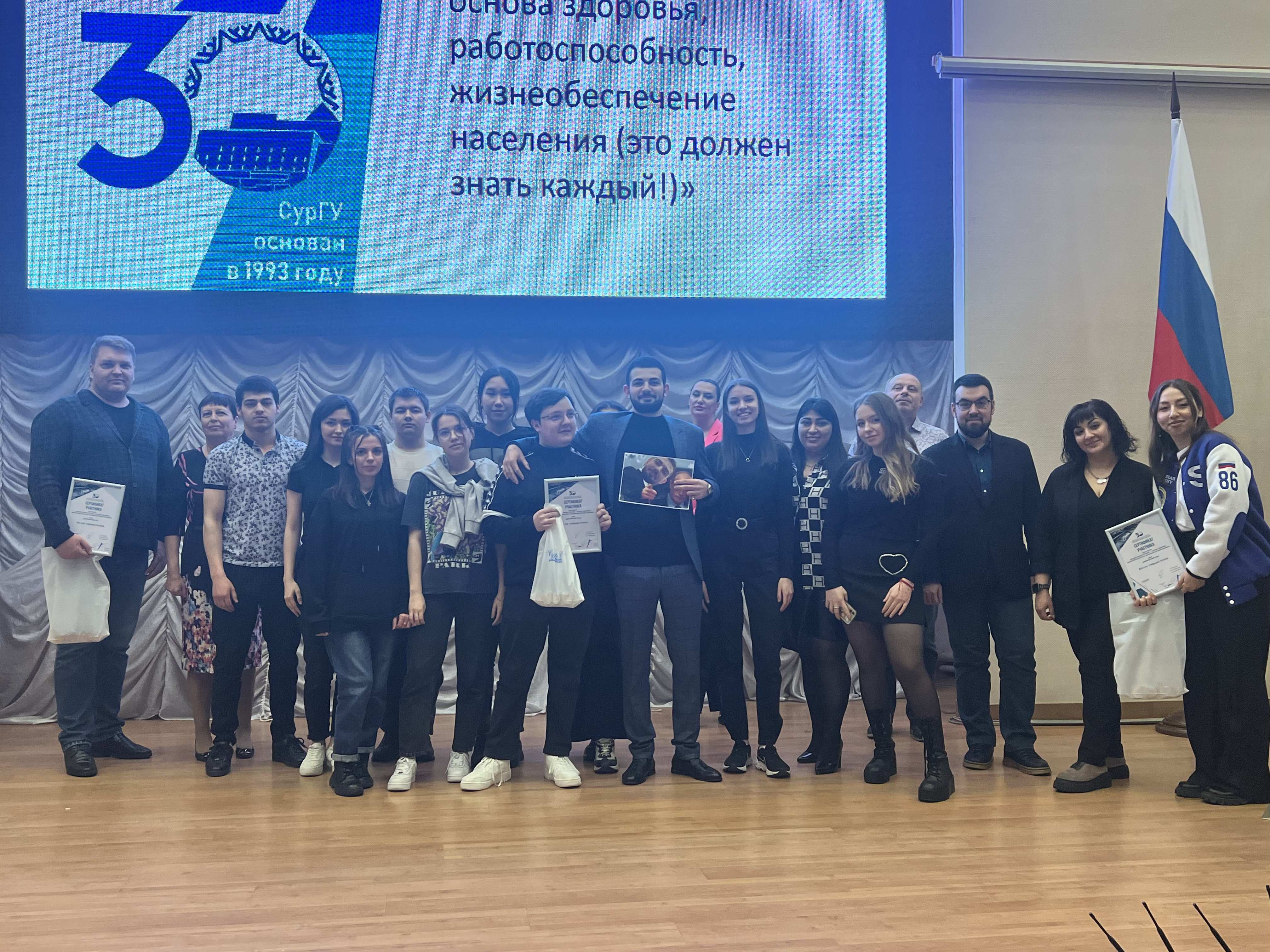 25 марта в конференц-зале Гуманитарного корпуса СурГУ успешно завершил работу Фестиваль для студентов Медицинского института, Медицинского колледжа и всех желающих студентов, преподавателей, а также жителей города «Рациональное питание – основа здоровья, работоспособности и жизнеобеспечения человека (это должен знать каждый!)», организованный преподавателями курса гигиены кафедры морфологии и физиологии С. В. Болотовым, В. С. Павловской, преподавателями Медицинского колледжа Е. Б. Павловским, Е. В. Алехиной в рамках плеяды мероприятий к 30-летию создания университета. На фестивале присутствовало более 200 человек.