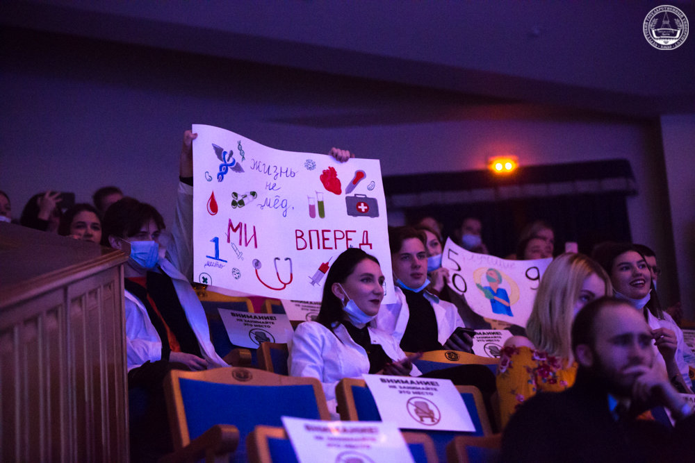 В финальном же этапе, который прошел 10 декабря в театре СурГУ, студенты должны были представить своего куратора, презентовать социальный видеоролик на актуальную в сегодняшних реалиях тему: «Мы против COVID-19», где важно было не только соответствовать заявленной тематике, но и придумать полноценный оригинальный сюжет на три минуты, затем продемонстрировать хореографическую постановку и авторскую песню на тему: «С наукой по жизни».
