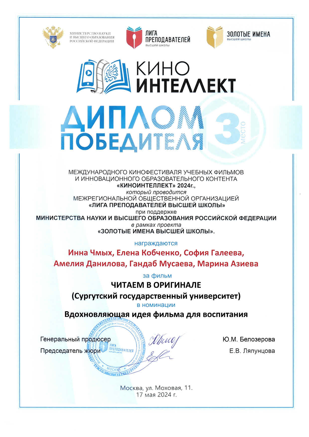 Лингвисты СурГУ в Международном фестивале учебных фильмов и инновационного образовательного контента «КиноИнтеллект – 2024»