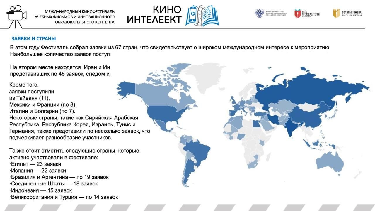 В этом году Международный фестиваль собрал заявки из 67 стран (Великобритания, Индонезия, США, Мексика, Франция, Германия, Испания, Египет, и т. д. Всего 791 заявка). Как отмечают организаторы, это демонстрирует единство задач фестиваля в области образования, просвещения и науки для представителей академического сообщества по всему миру.